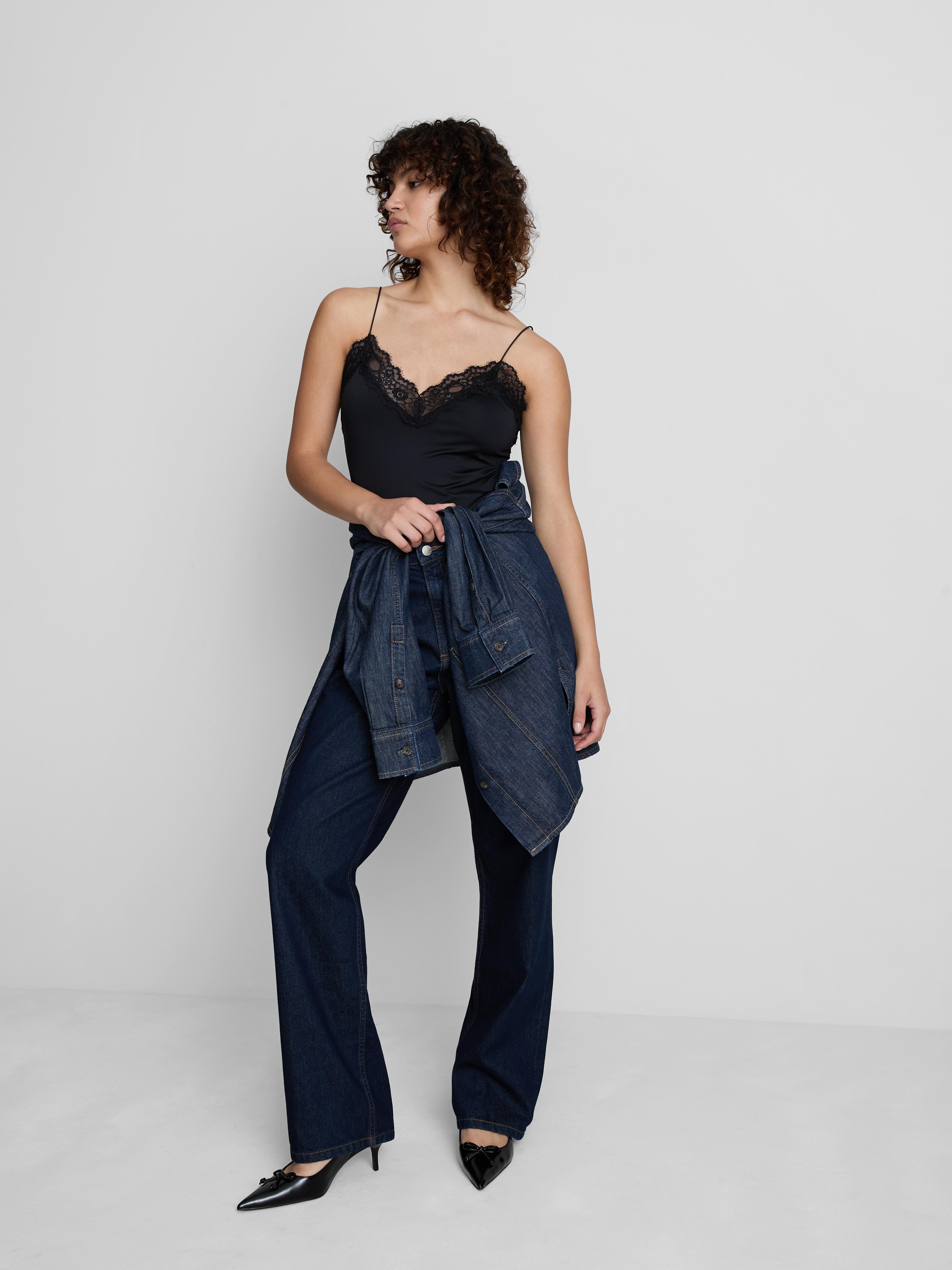 Finished with a delicate lace trim, this cami top has a V neckline and a regular fit