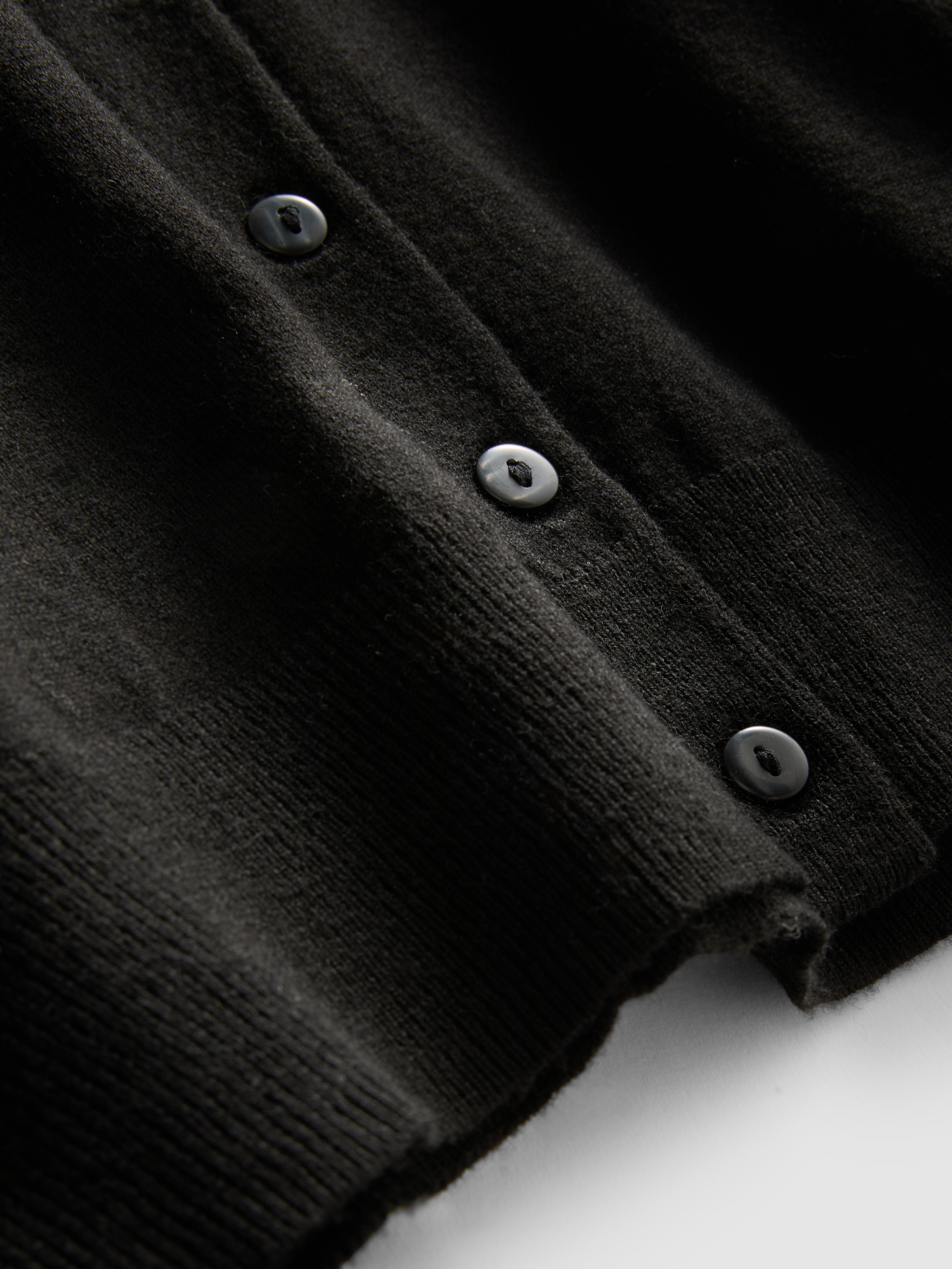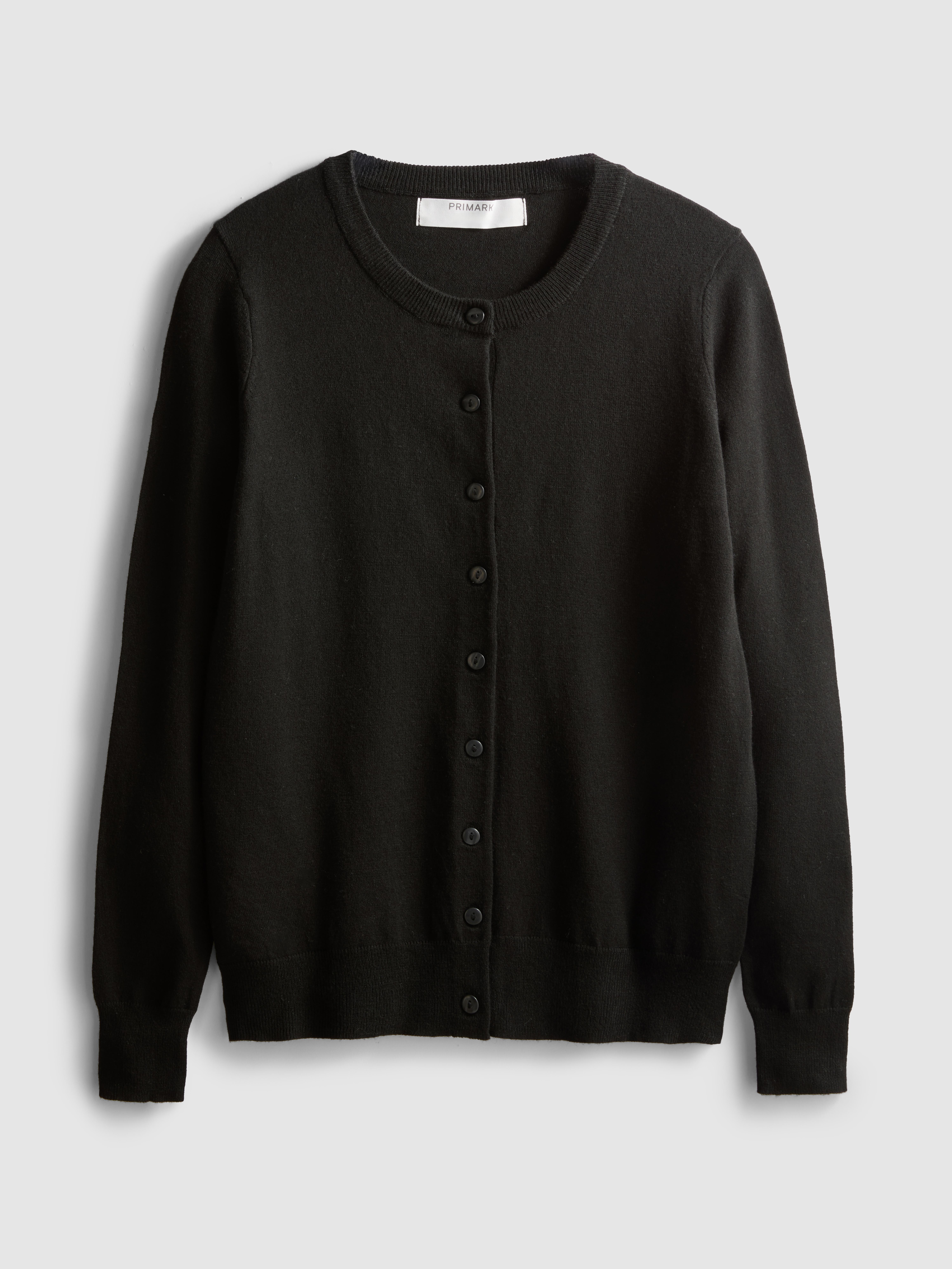 Perfect for layering, this cardigan has a crew neck, button down front and ribbed cuffs and hems