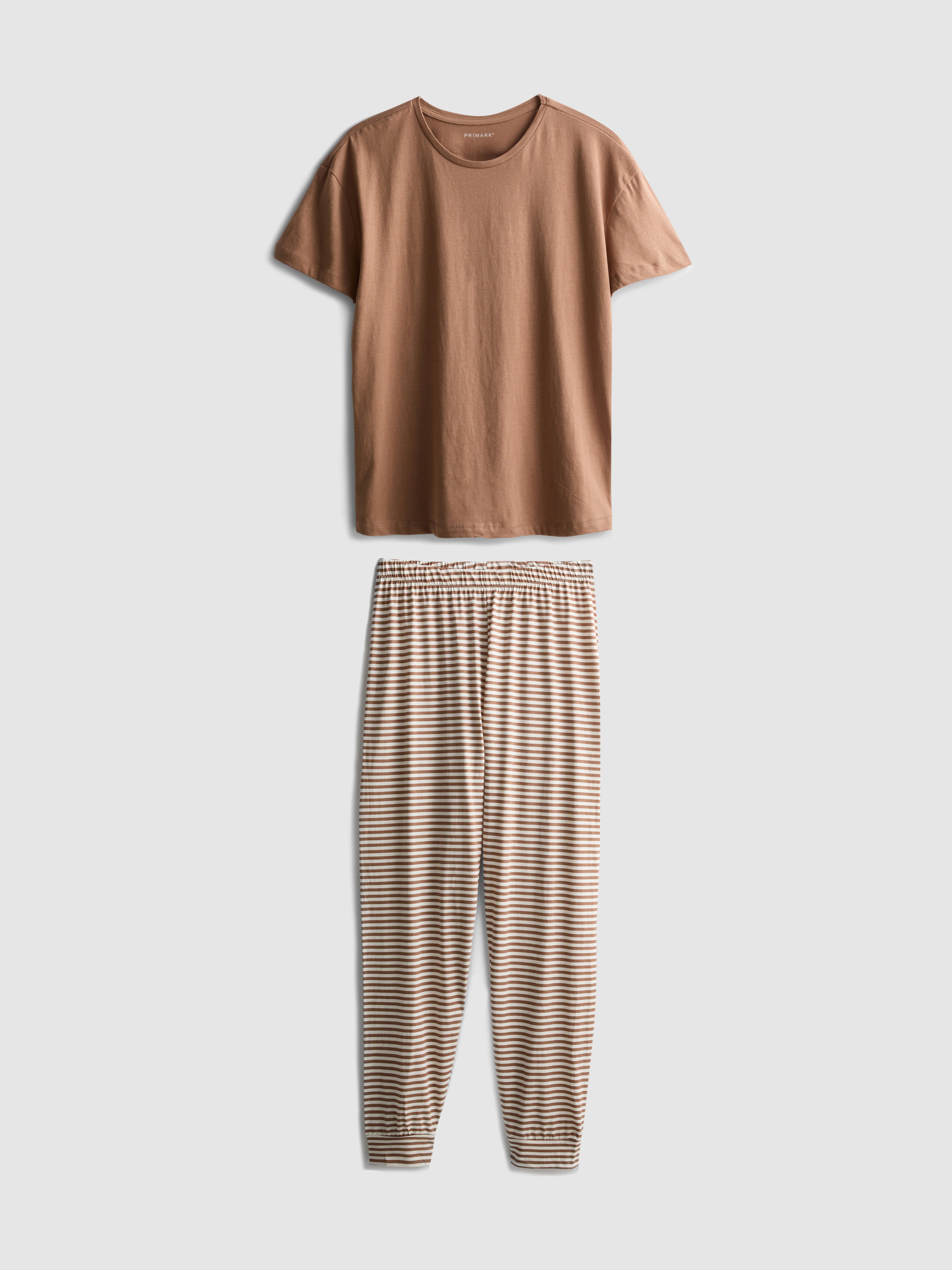 Cozy pajama set with a short-sleeve top and bottoms with an all-over print