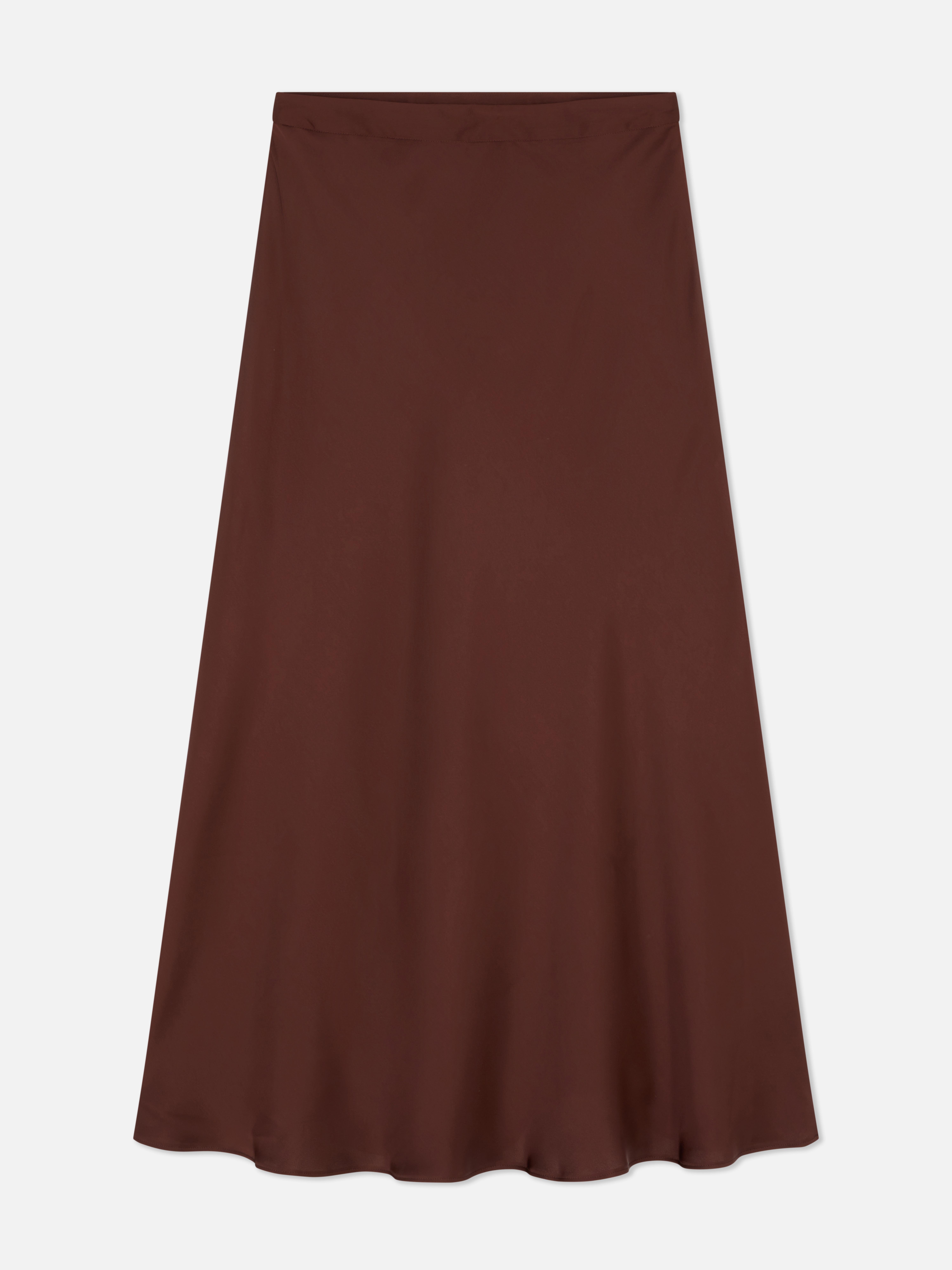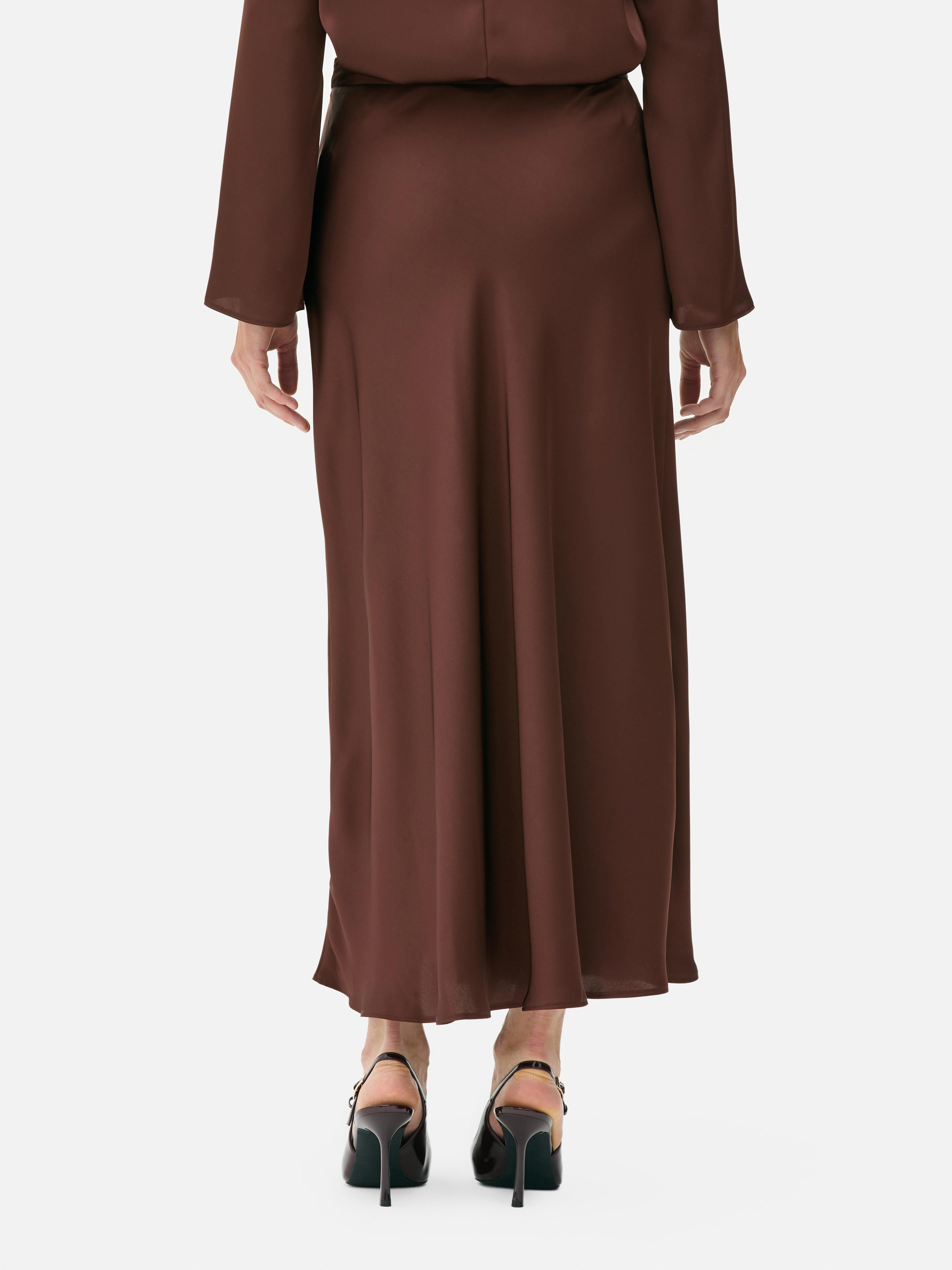 Add a touch of effortless elegance to your wardrobe with this Paula Echevarría satin bias midi skirt. In a rich chocolate brown hue, it drapes beautifully for a flattering, fluid silhouette that moves with you. Perfect for both day and night, it’s designed to sit comfortably at the waist for a sleek, polished look. Pair it with the matching satin top for a coordinated outfit that’s timeless, chic, and effortlessly sophisticated.