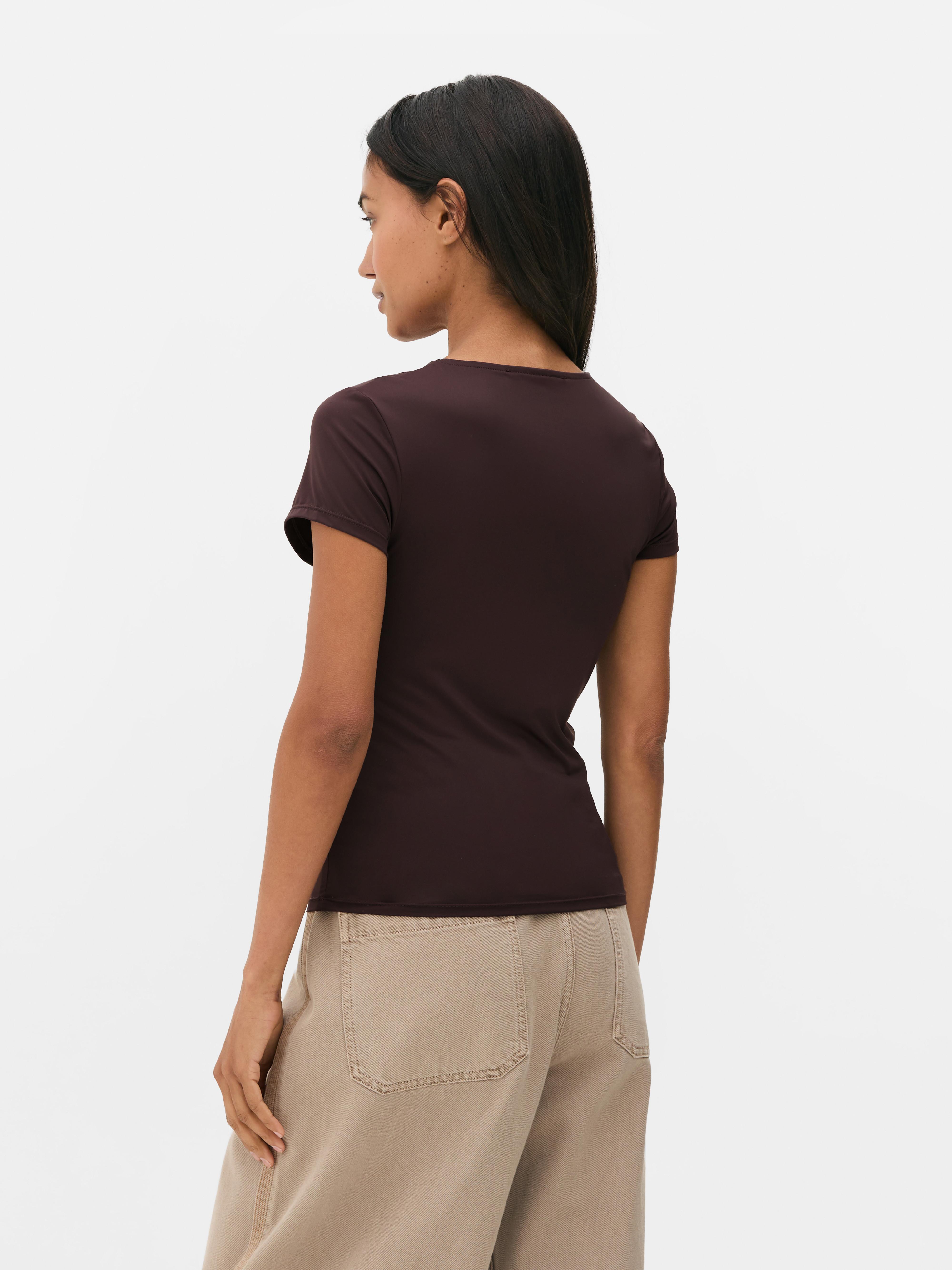 This Second Skin crew neck tee in rich fig shade is designed to fit like a dream. Made from stretchy fabric, it hugs your body comfortably without feeling tight. The short sleeves and classic crew neckline keep it simple and timeless, while the regular length makes it perfect for layering or wearing alone. Whether you’re dressing it up or keeping things casual, this tee offers a smooth, sleek finish that feels like a second skin all day long.