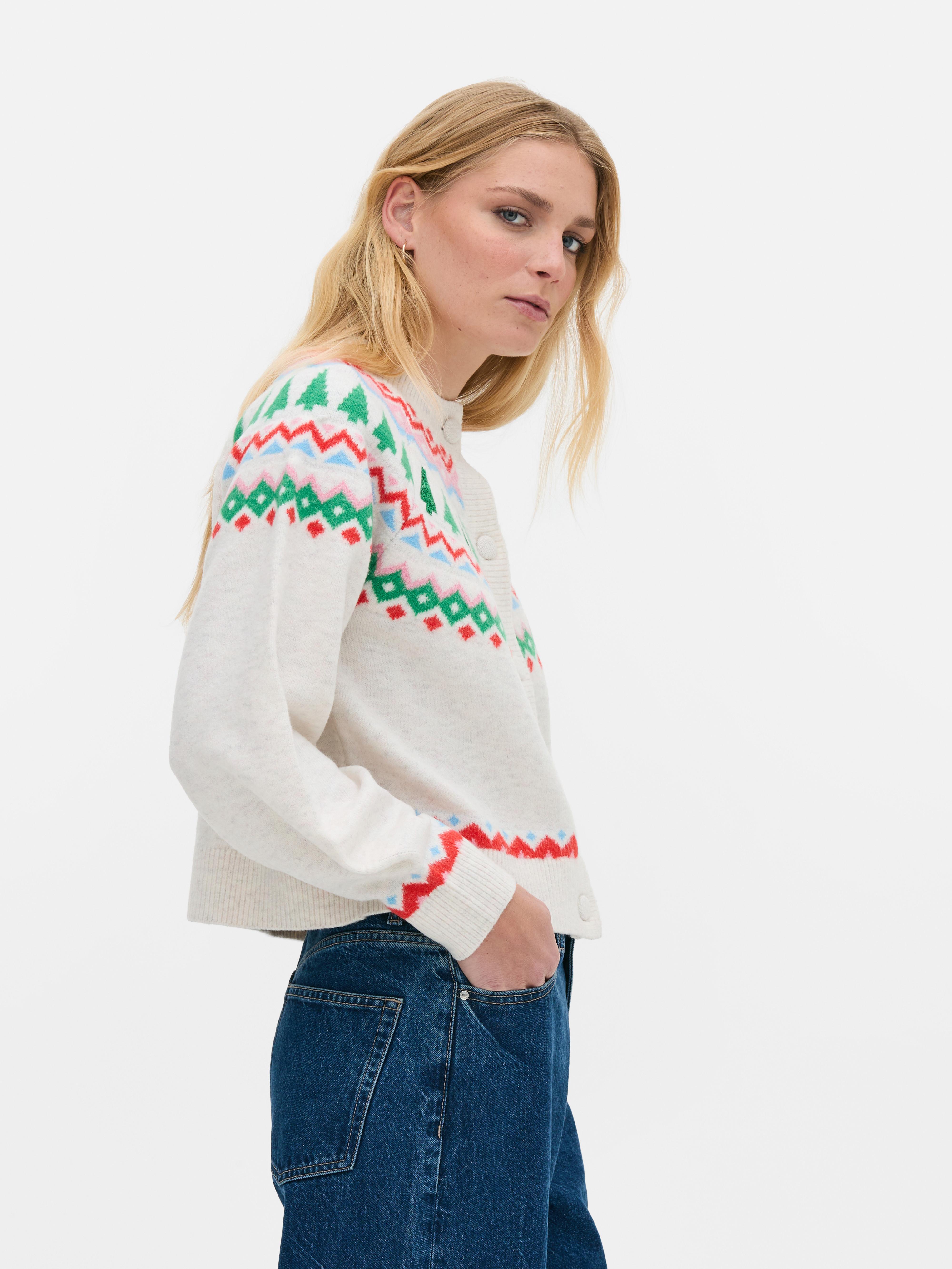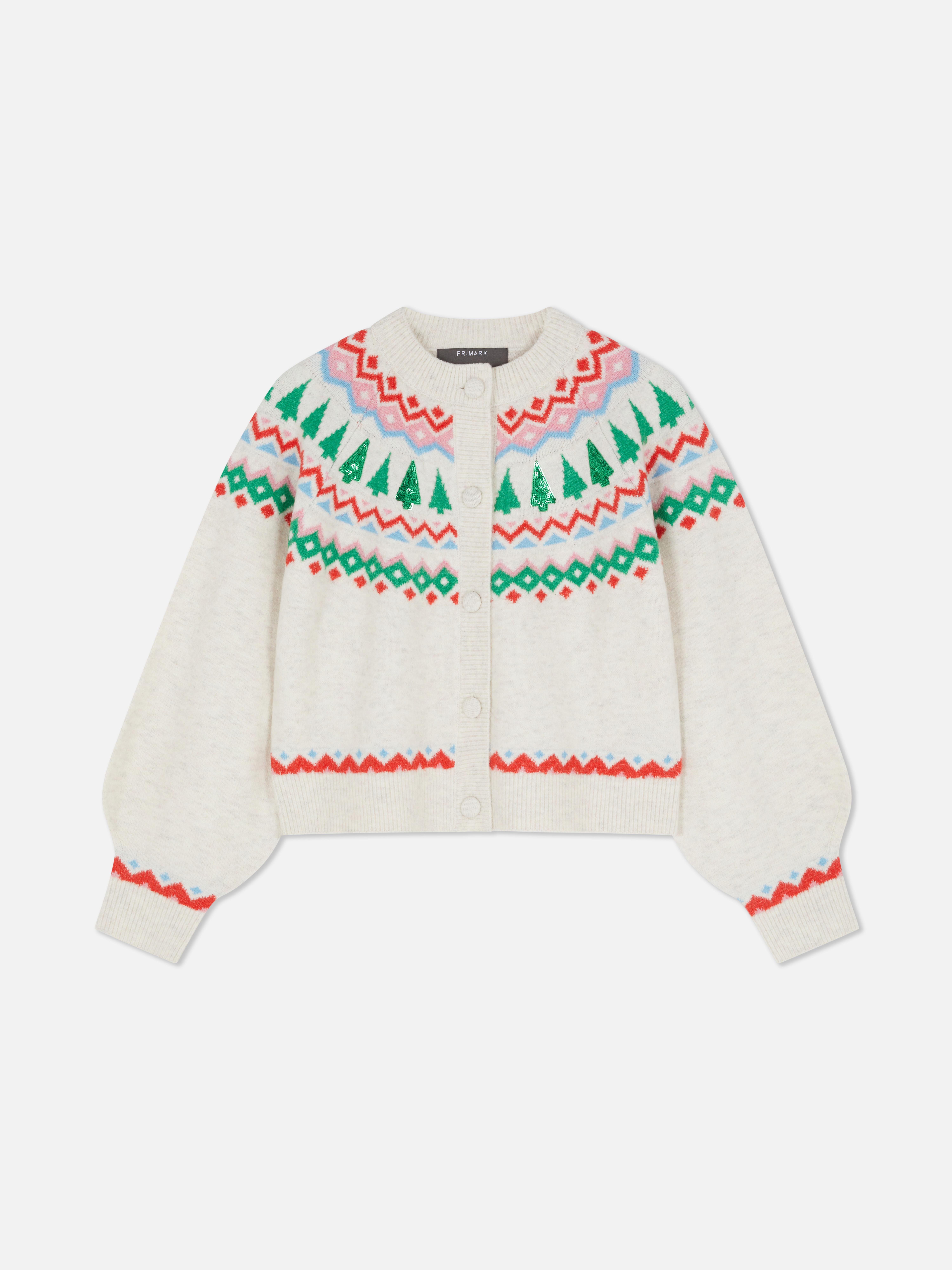 Button-up cardigan with Fair Isle sparkly Christmas tree design