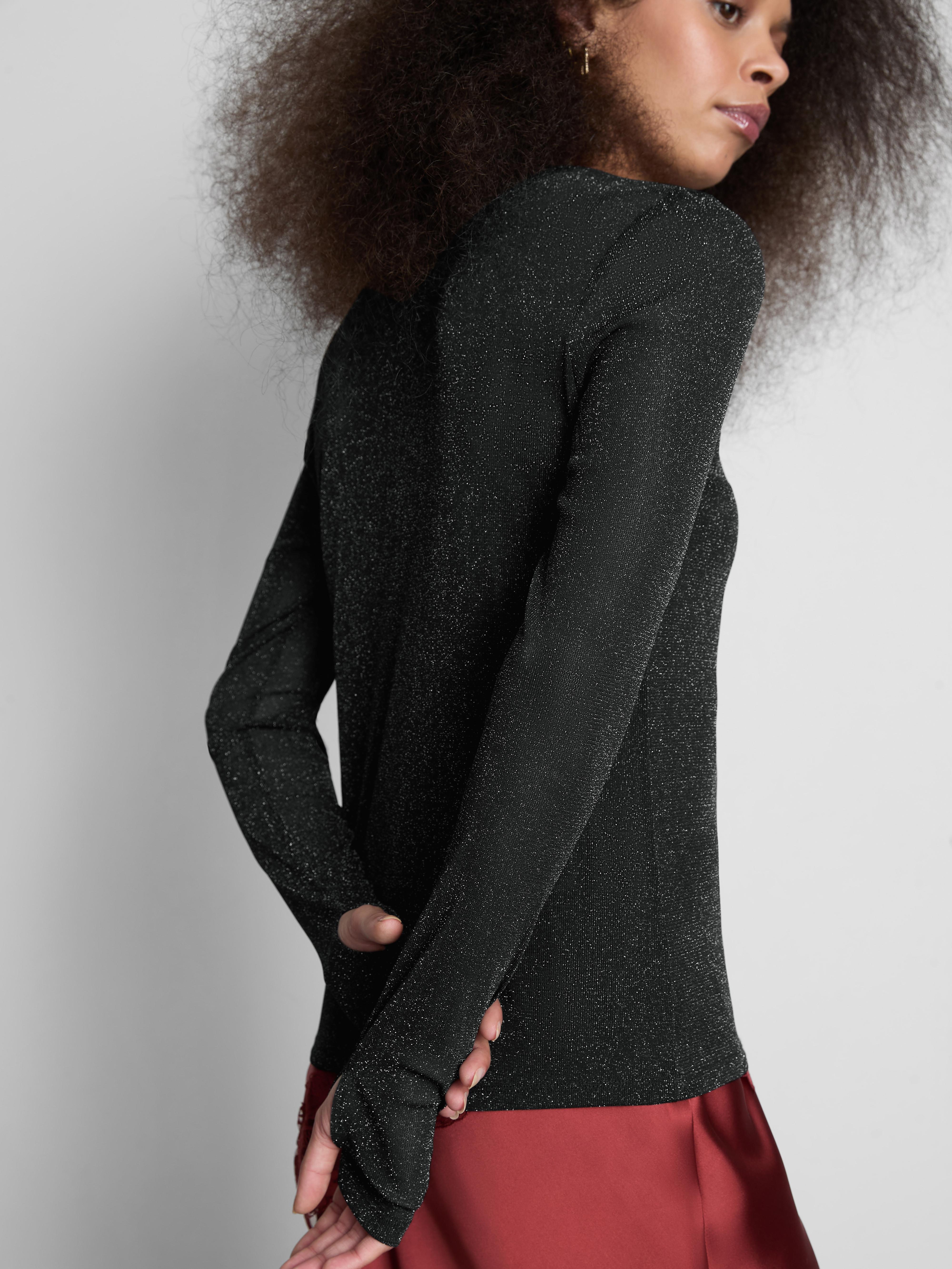 Long sleeve top with metallic yarn intertwined for a sparkly finish