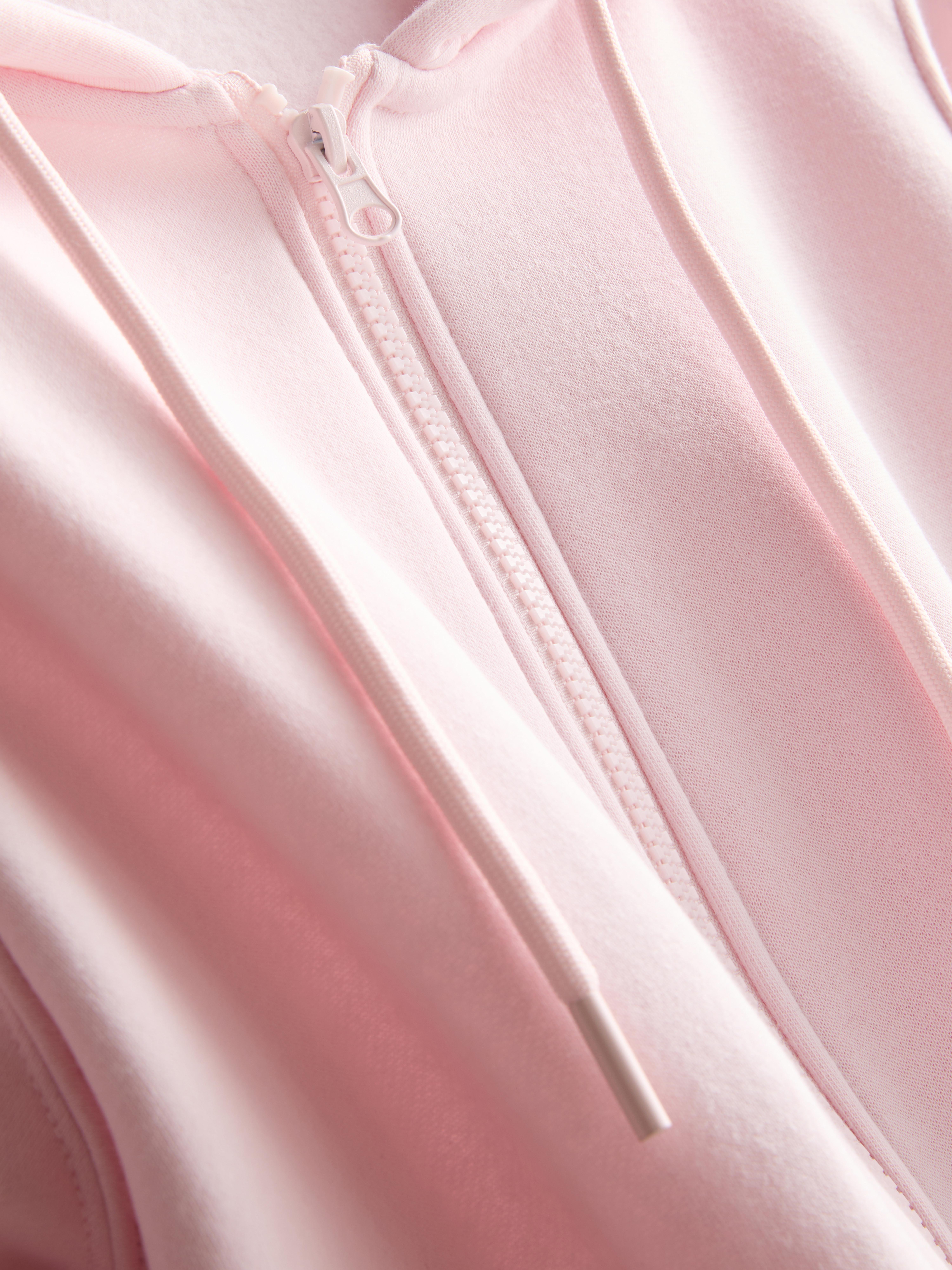 This light pink zip-through hoodie is your go-to layer for casual comfort and everyday versatility. Featuring a full-length zipper, this relaxed-fit hoodie can be worn open or zipped for adjustable warmth and style. A drawstring hood and split kangaroo pocket add functionality, while the soft, fleecy fabric delivers cosy, all-day comfort. It pairs effortlessly with joggers, jeans, or leggings. Ribbed cuffs and hem help retain warmth and shape, making it ideal for layering through changing seasons. Whether you're lounging at home or heading out, this hoodie keeps things easy, comfortable, and effortlessly cool.