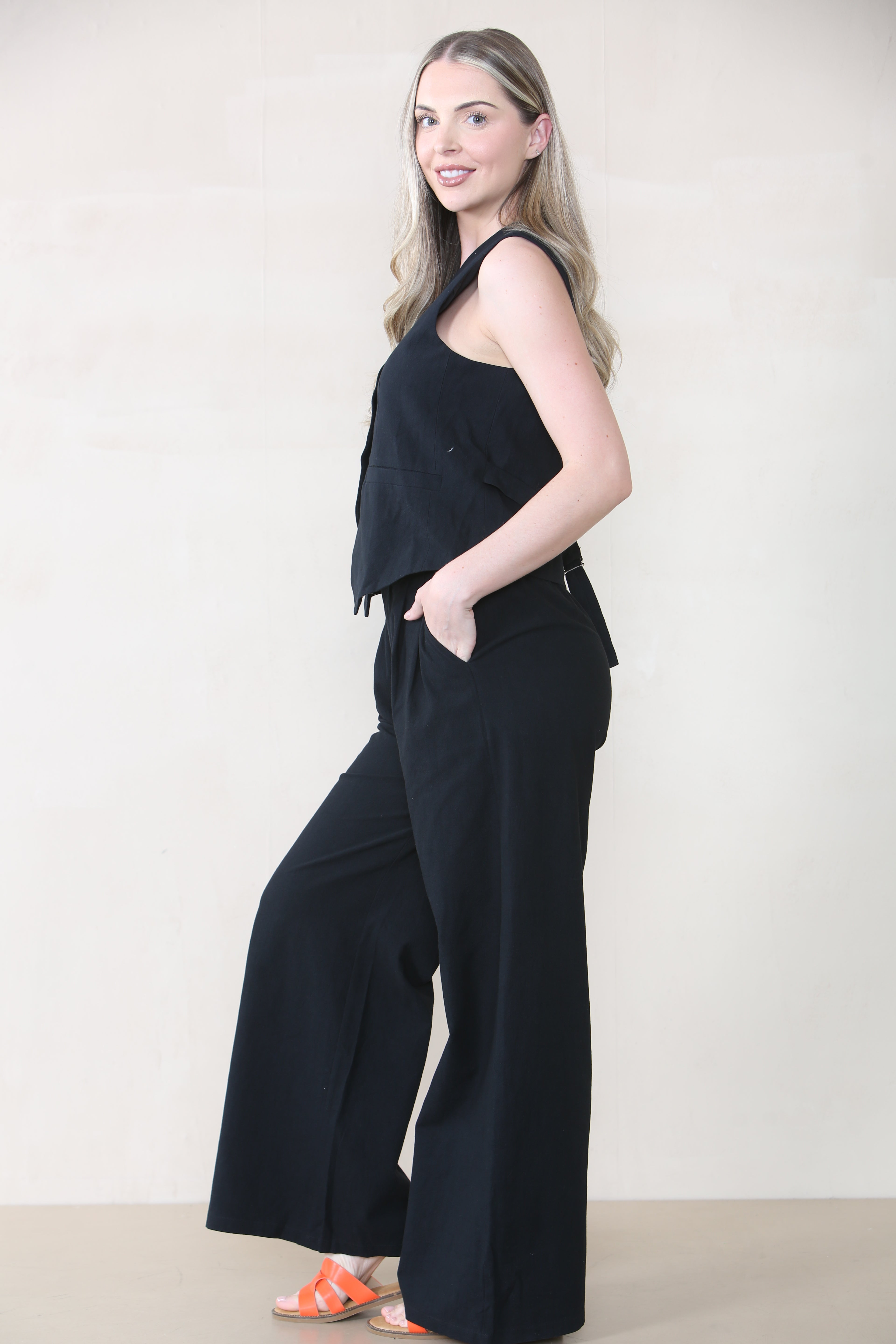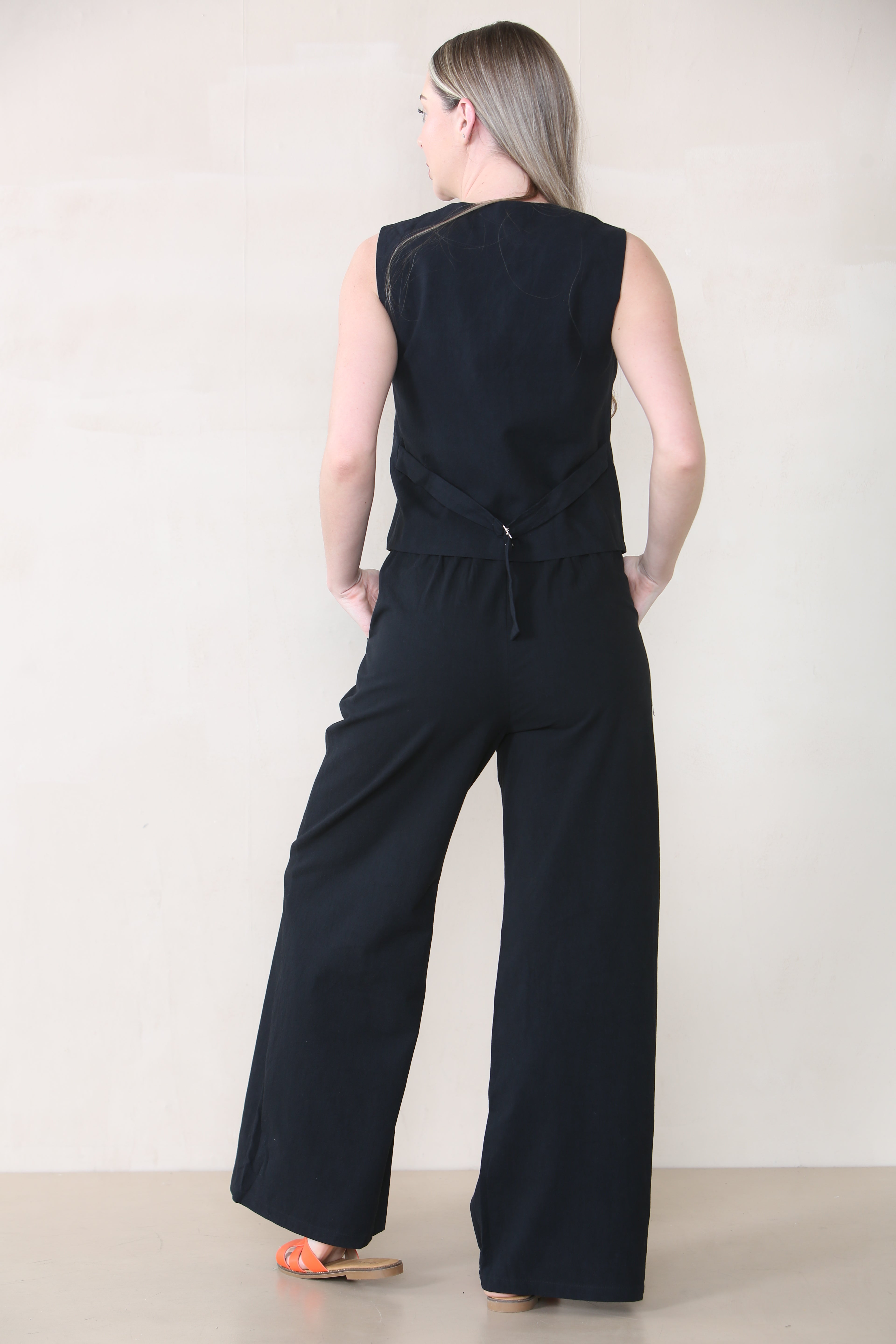 Designed for the modern woman on the go, this outfit effortlessly combines style and comfort. A flattering V-neckline lends a sophisticated touch, while the sleeveless design keeps you cool and comfortable during warm days.