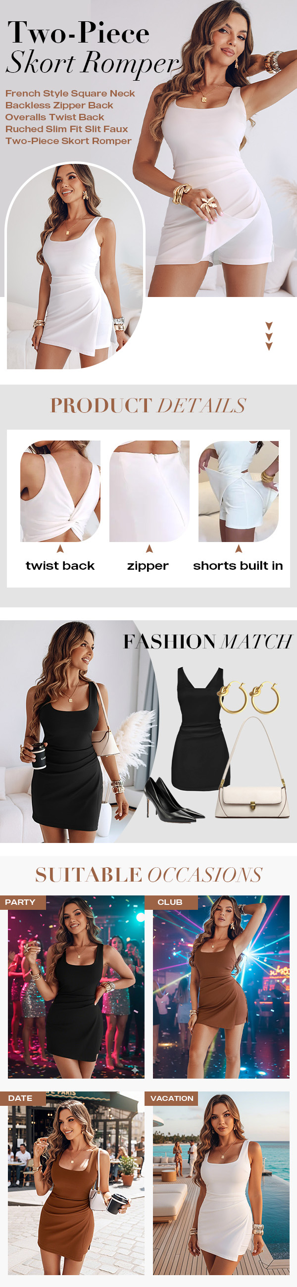 - Silhouette & Fit: Slim-fit skort romper with above-knee length creates a faux two-piece look that��s playful and stylish.
