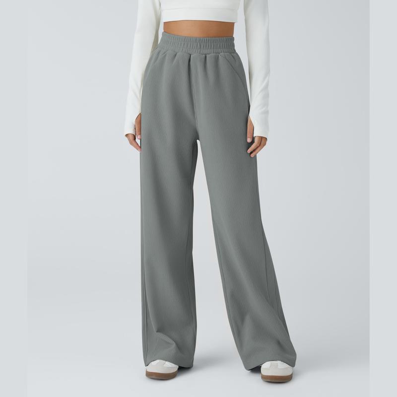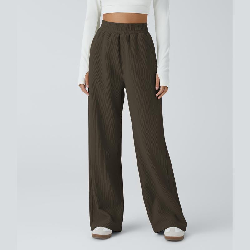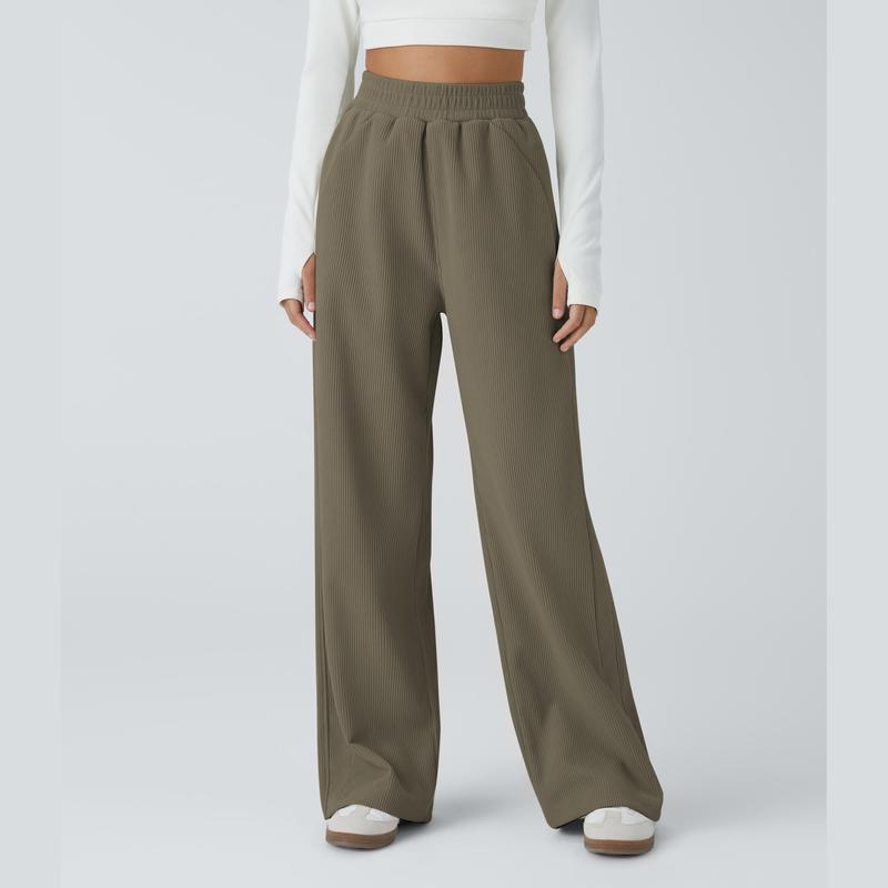 High Waisted Side Pocket Straight Leg Mop Corduroy Casual Pants