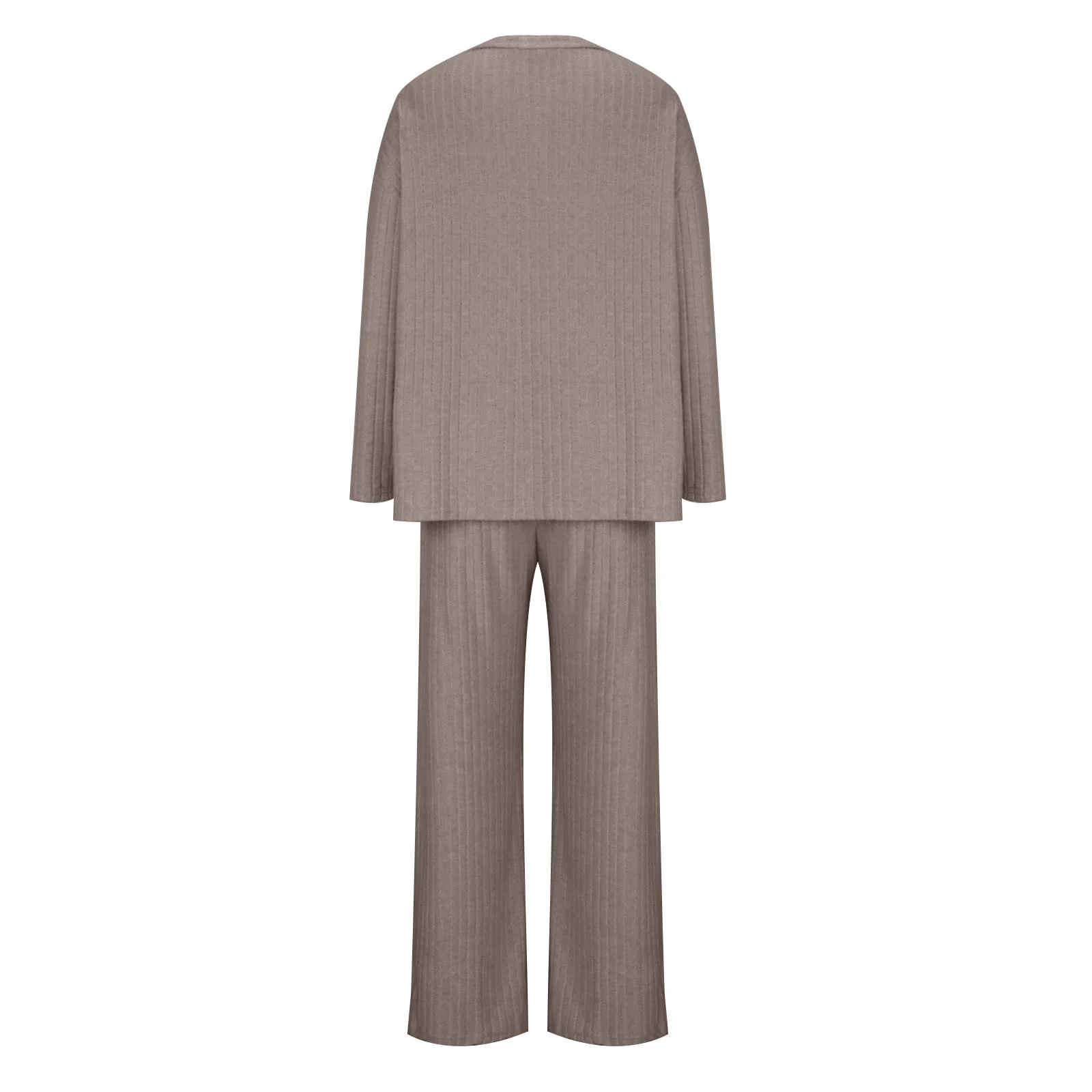 • Women Fall Winter Two Piece Outfit Ribbed Knit Pullover Sweater Top + Loungewear Wide Leg Pants Casual Pajama 2PCS Set