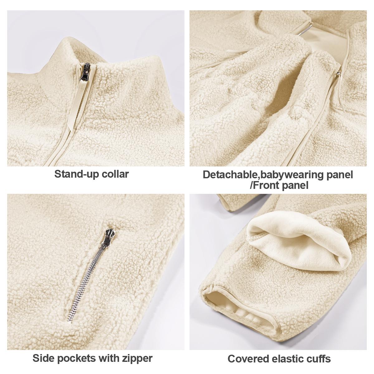 - Versatile 2-in-1 Design: It can be worn as a classic fleece jacket or with the detachable babywearing panel for carrying your baby comfortably and securely.