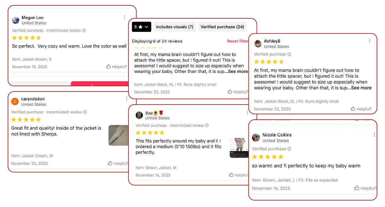 NOTE: When worn as a standalone jacket, it may run slightly small. We recommend moms select one size larger based on actual measurements.