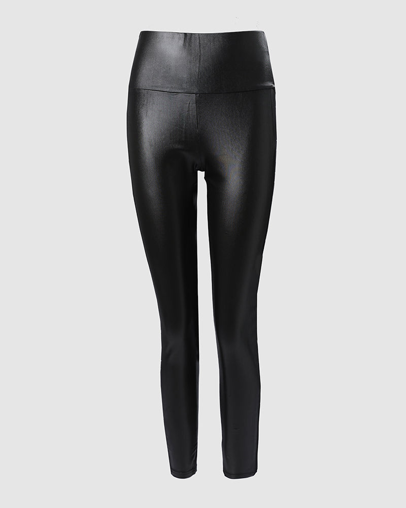 Silhouette & Fit: High-waist skinny design hugs the waist and legs, creating a streamlined silhouette. The stretchy PU blend ensures a snug yet comfortable fit that accentuates curves while allowing freedom of movement.