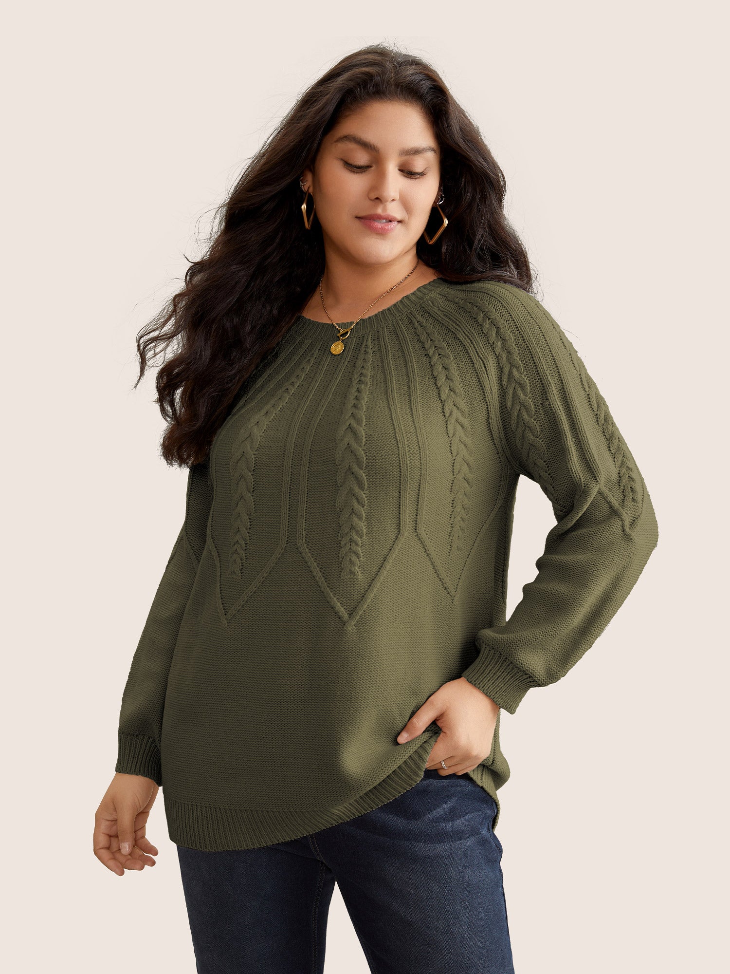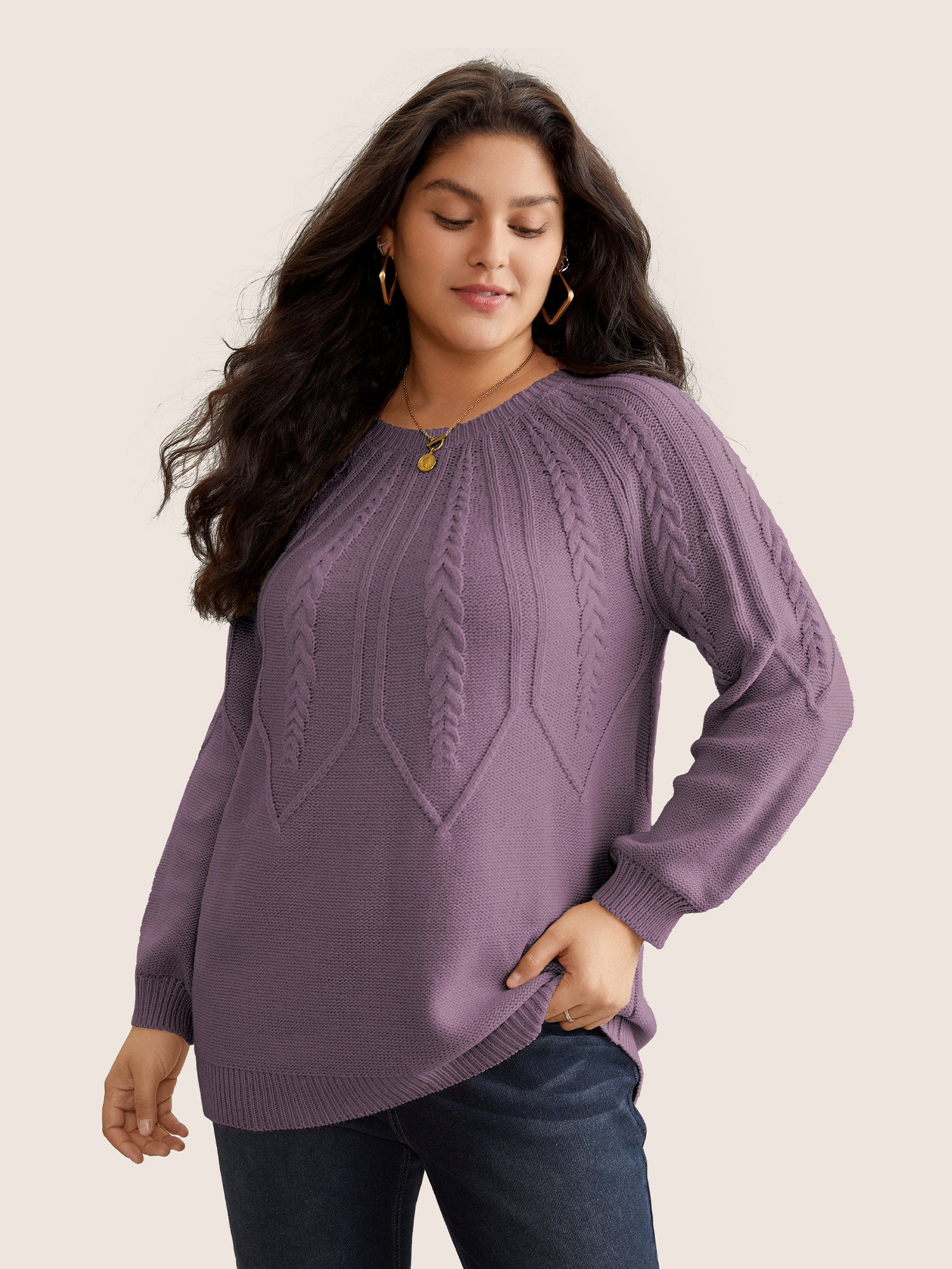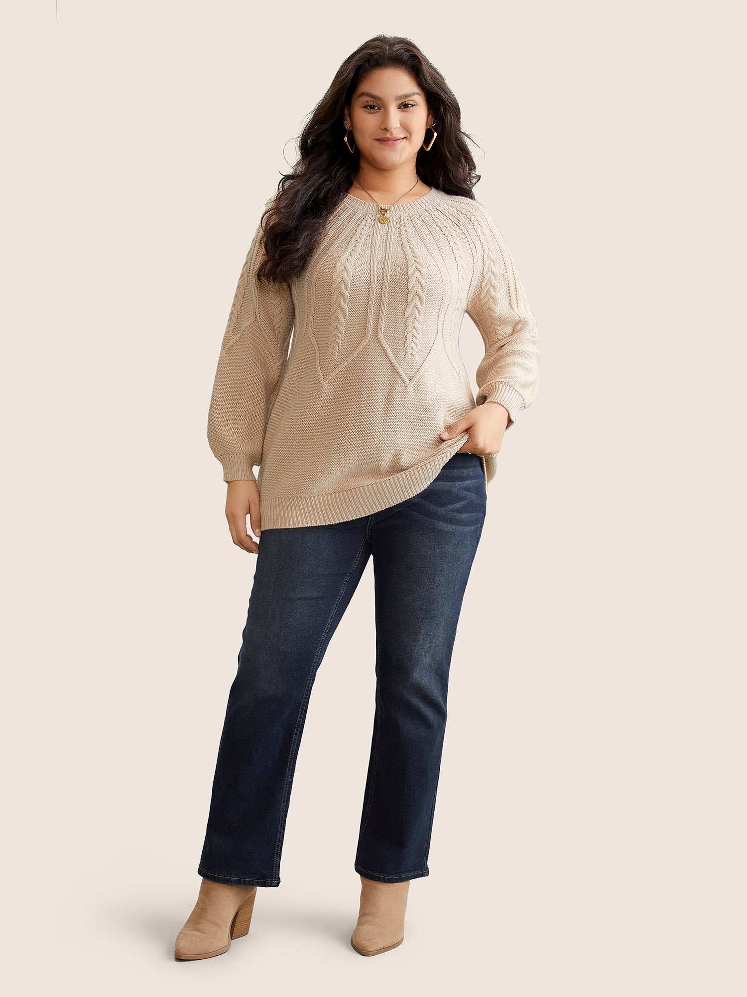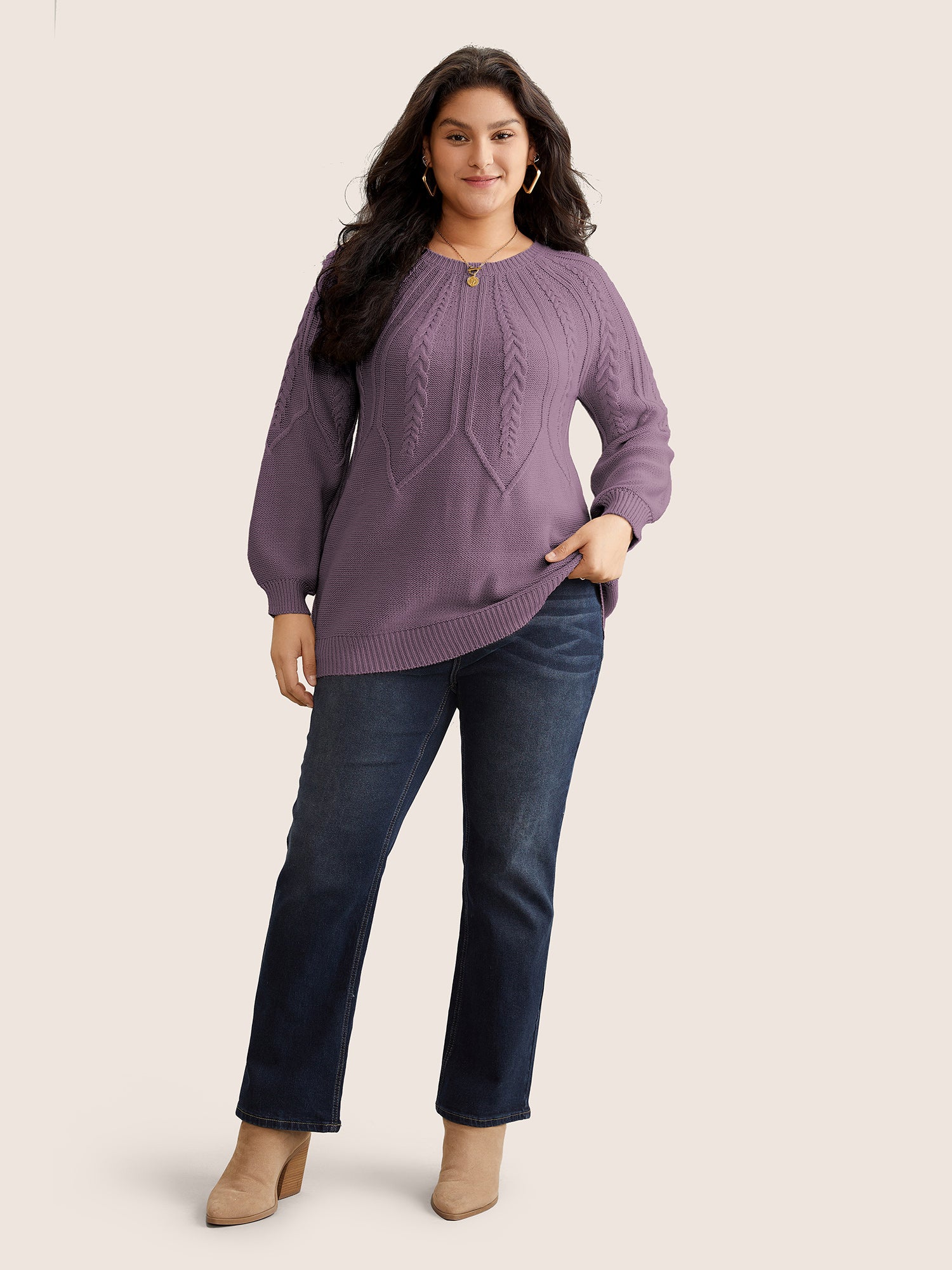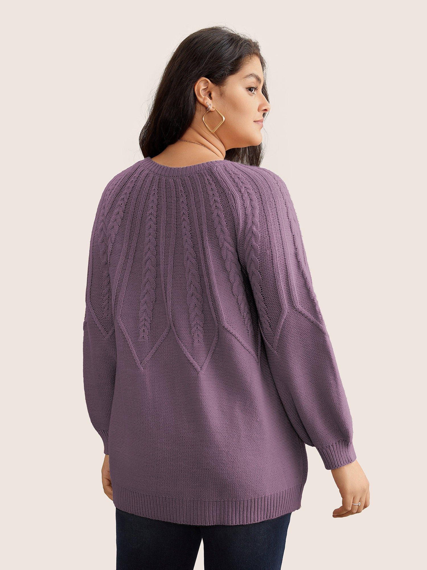 Solid Textured Lantern Sleeve Pullover