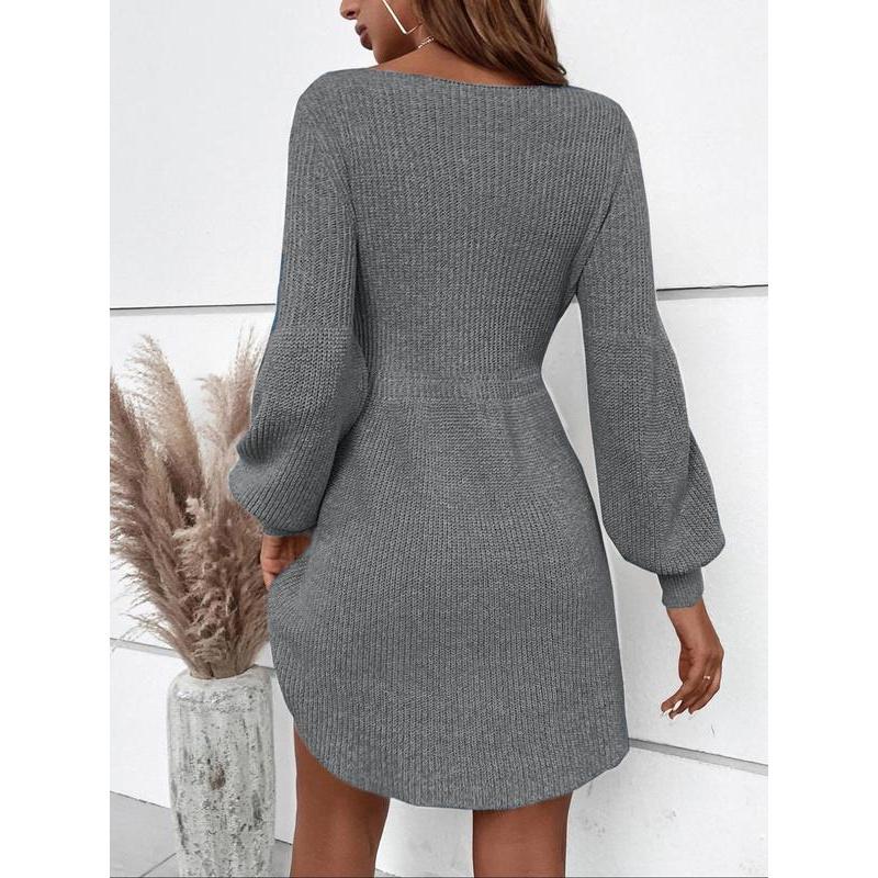 [Distinct Lantern Sleeves]: Featuring unique lantern sleeves, this dress adds a charming silhouette that sets it apart from typical sweater dresses.