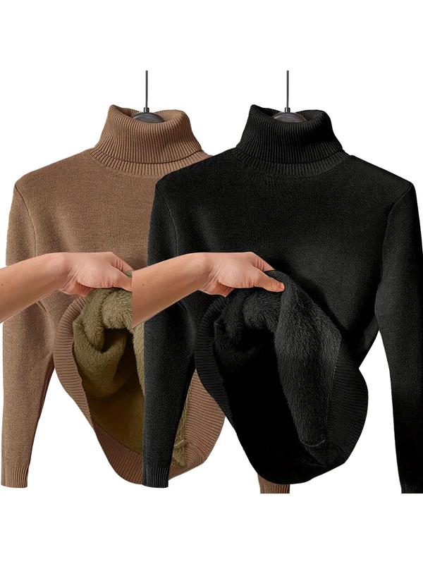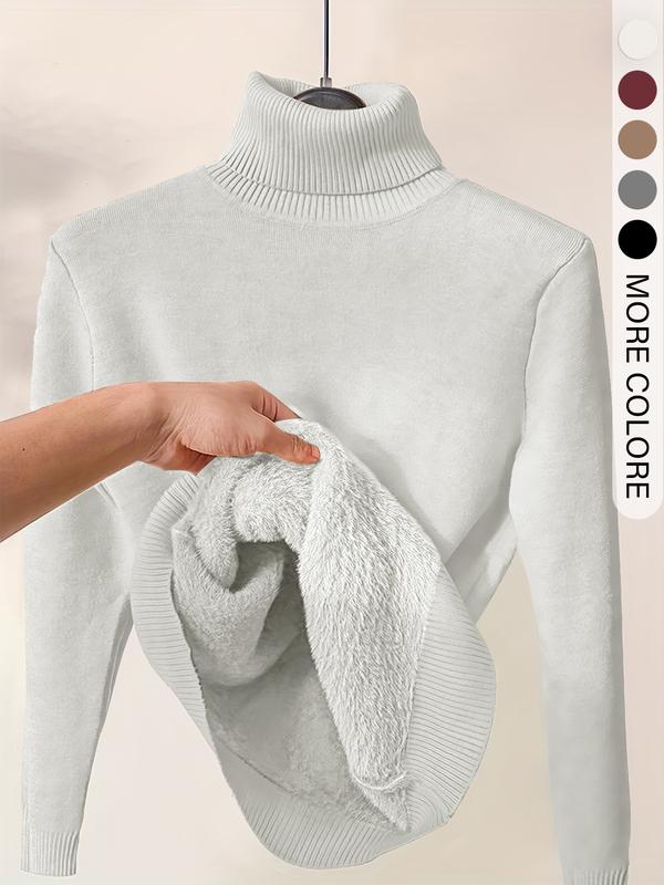 • Women's Solid Thermal Lined Drop Shoulder High Neck Sweater, Casual Solid Long Sleeve Jumper For Daily Outdoor Wear, Women Knit Top for Fall & Winter