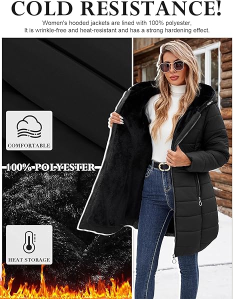 CMTOP Women's Coats Winter Fleece Lined Long Jackets for Women Warm Padded Parka Coat Plush Thermal Water Repellent Elegant Jacket Zipper Hooded Outwear