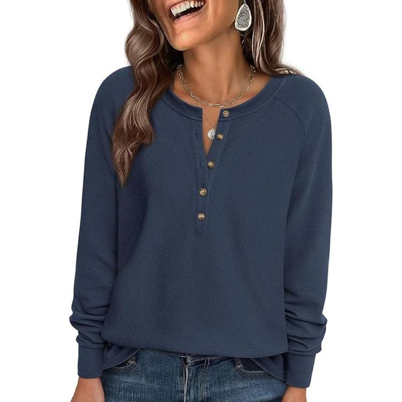 Womens Long Sleeve Waffle Knit Shirts Casual Fall Clothes