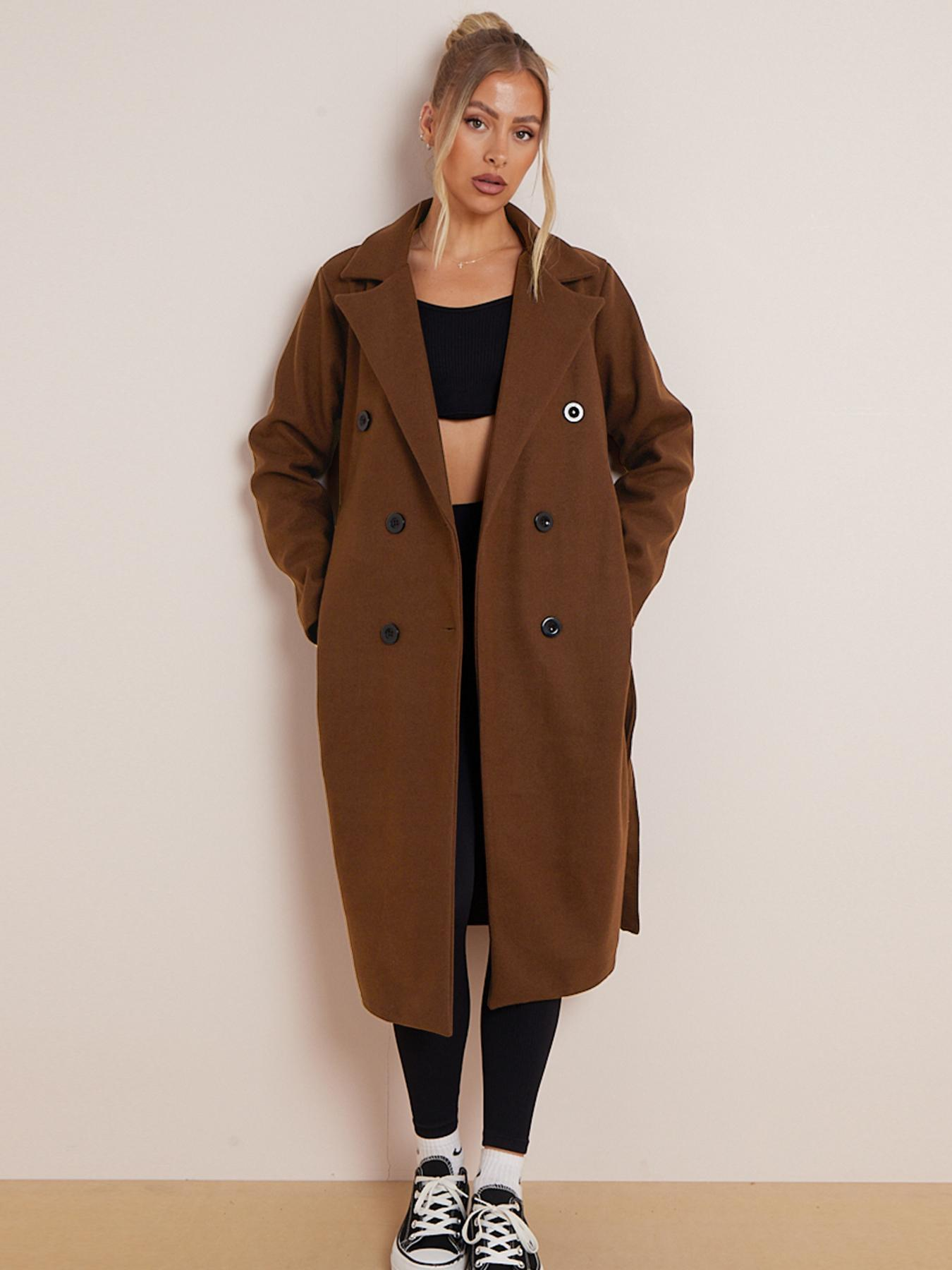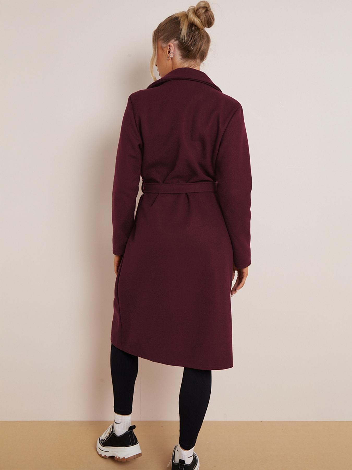Classy Notch Lapel Double Breasted Waist Tie Thermal Coat
