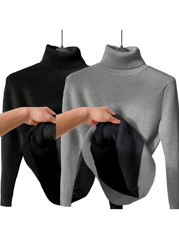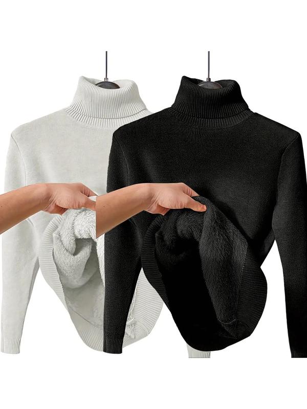 • Women's Solid Thermal Lined Drop Shoulder High Neck Sweater, Casual Solid Long Sleeve Jumper For Daily Outdoor Wear, Women Knit Top for Fall & Winter