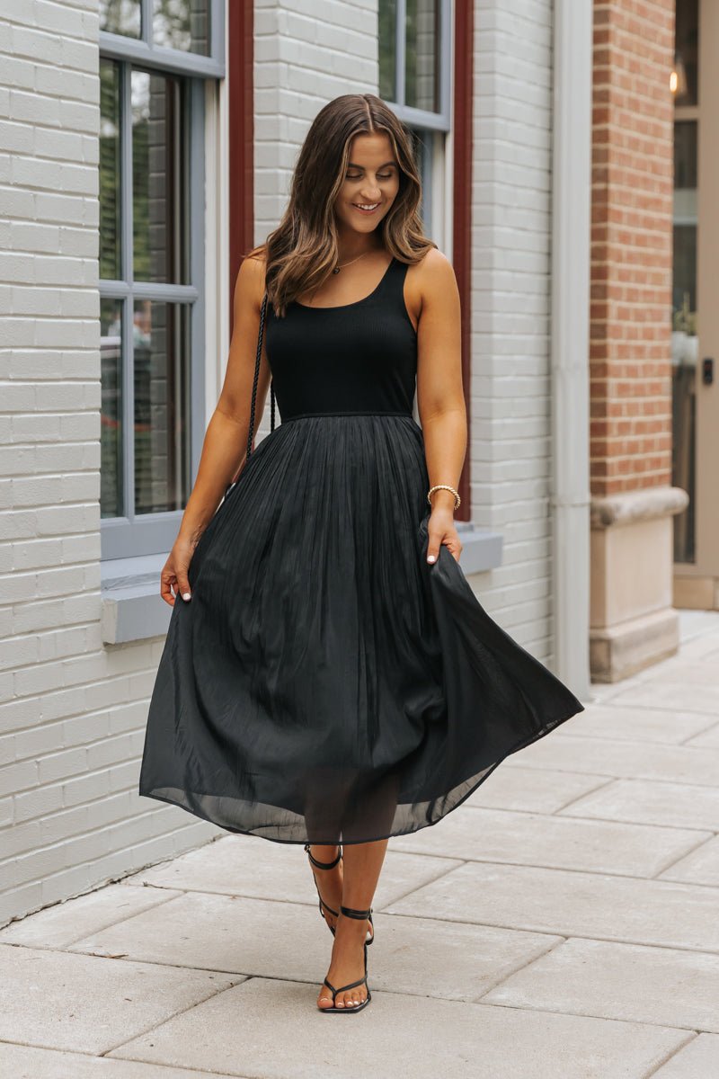 This versatile Black Pleated Tank Midi Dress is a must-have for any wardrobe!