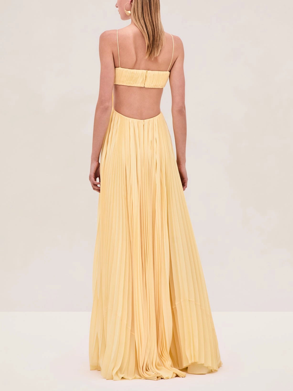 Elegant Pleated Cutout Flowy Party Maxi Dress