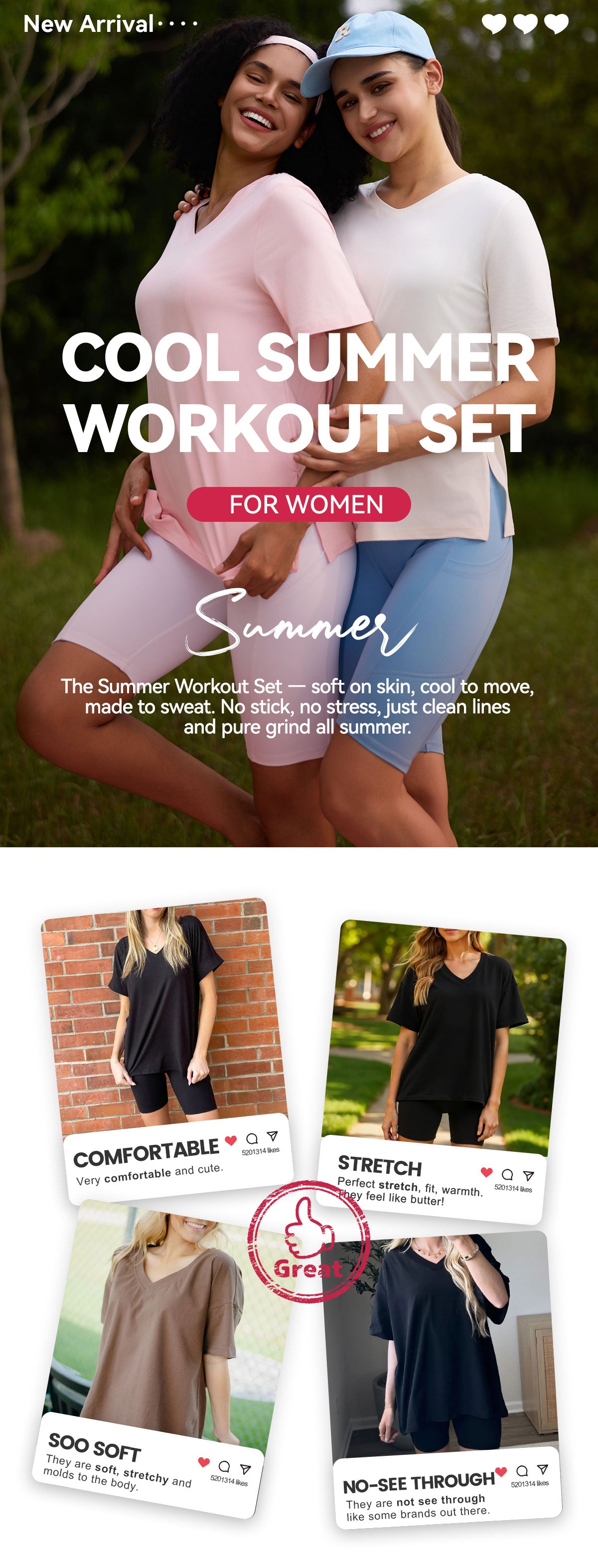 SHOWITTY Women's Summer Lounge Set - Relaxed Fit Tee and Comfy Shorts, 2-Piece Matching Set for Home, Workout, or Running Errands