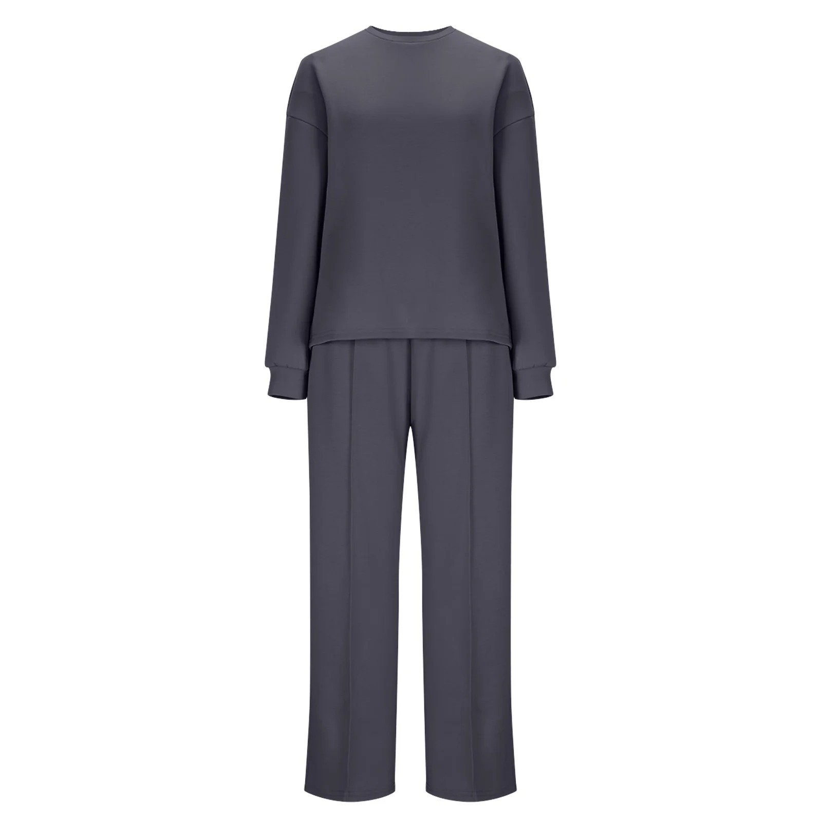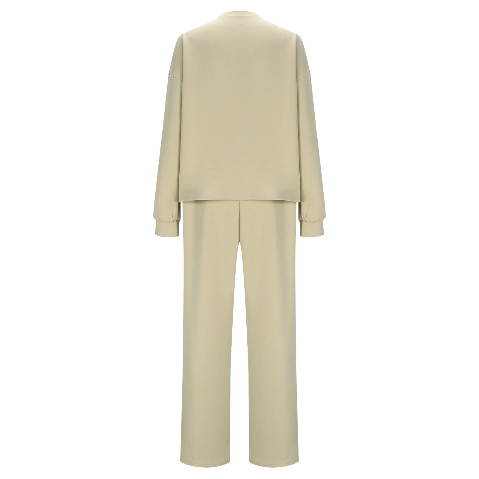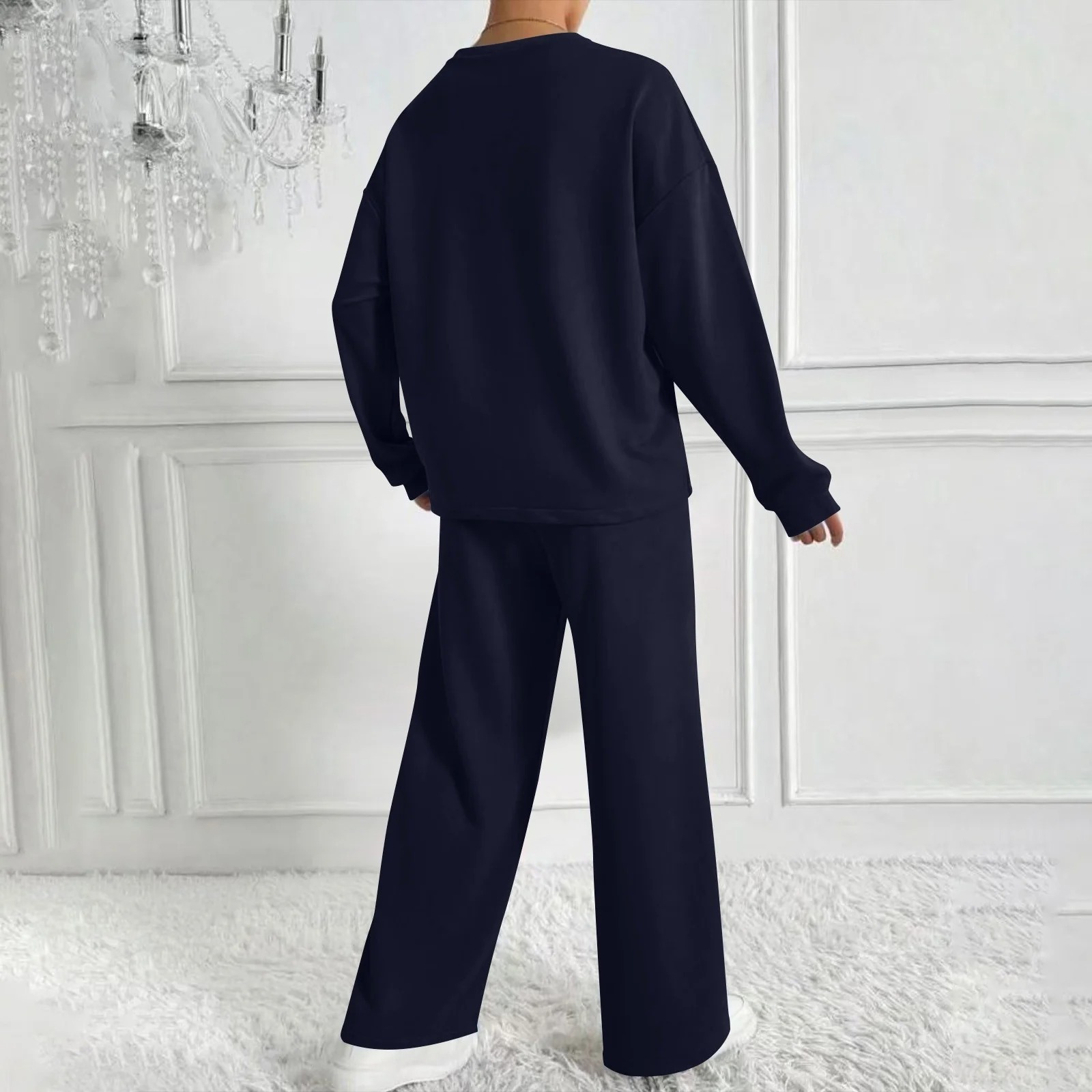 This Women's Casual Two-Piece Set is a perfect combination of comfort and style. Featuring a long sleeve crew neck top and matching pants, this set is made from a soft polyester blend with added elastane for stretch and flexibility. The breathable fabric ensures comfort, while the stretchy material provides a flattering, easy fit. Whether you're lounging at home or out for casual errands, this versatile set is ideal for everyday wear. Plus, it's machine washable for hassle-free maintenance.