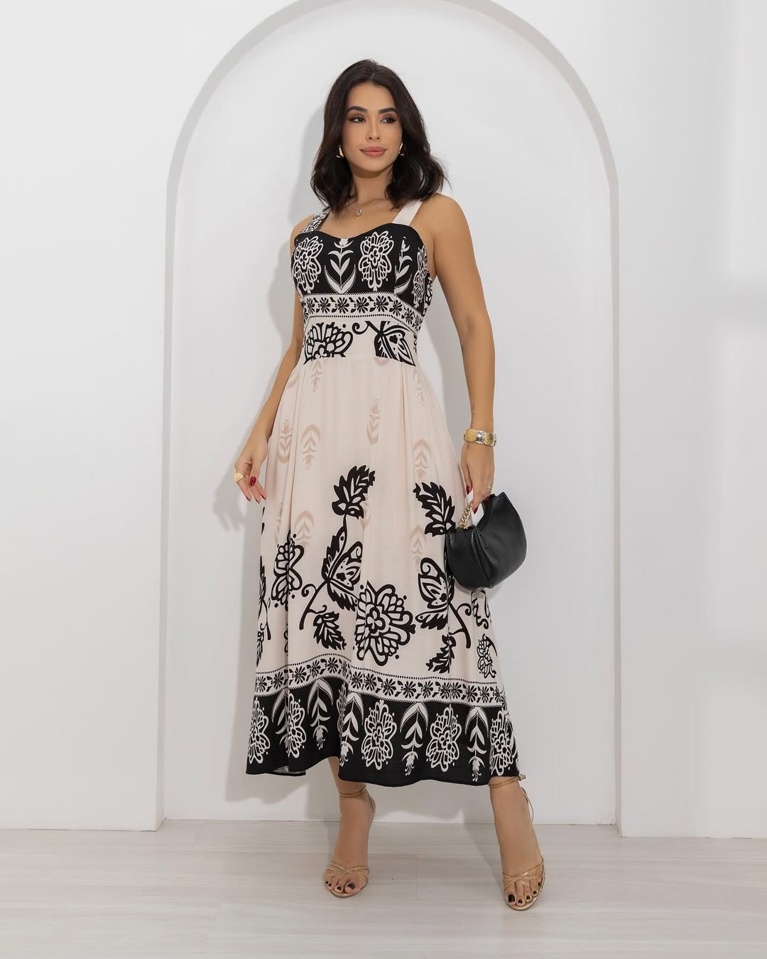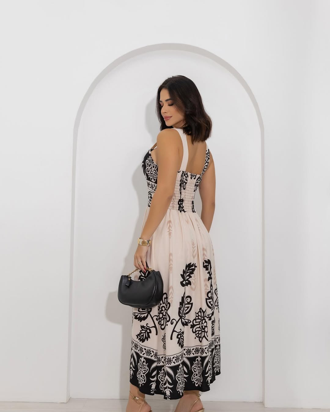 - The empire-waist maxi dress with flared hem can easily slender your shape and optimize your body proportion to show your soft femininity well, the smocked bodice will offer you some extra comfort and stretch