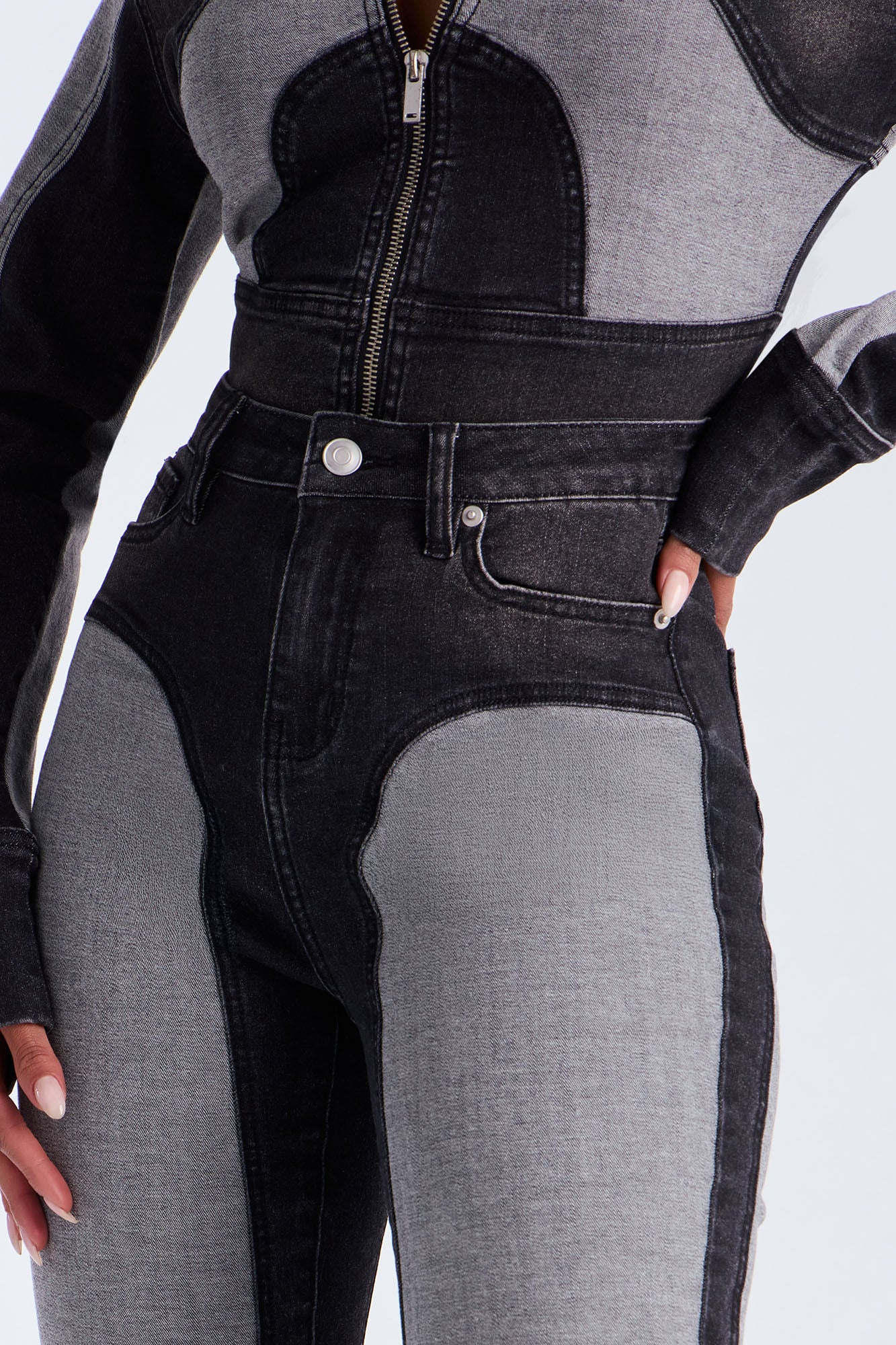 Available In Black Wash And Medium Wash.Pair With Coronado Two Tone Denim Moto JacketSkinny Jean5 PocketTwo Tone30.5" Inseam11" High RiseMedium StretchDisclaimer: Due To The Specialized Wash, Each Garment Is Unique.Self: 68.1% Cotton 30% Polyester 1.9% SpandexImported