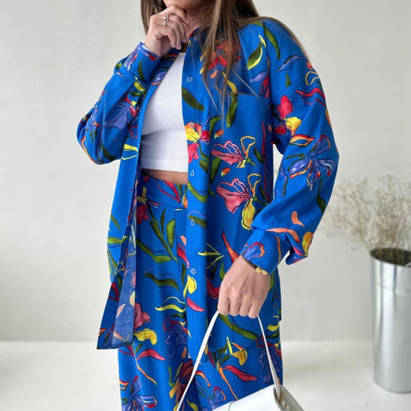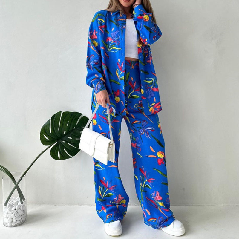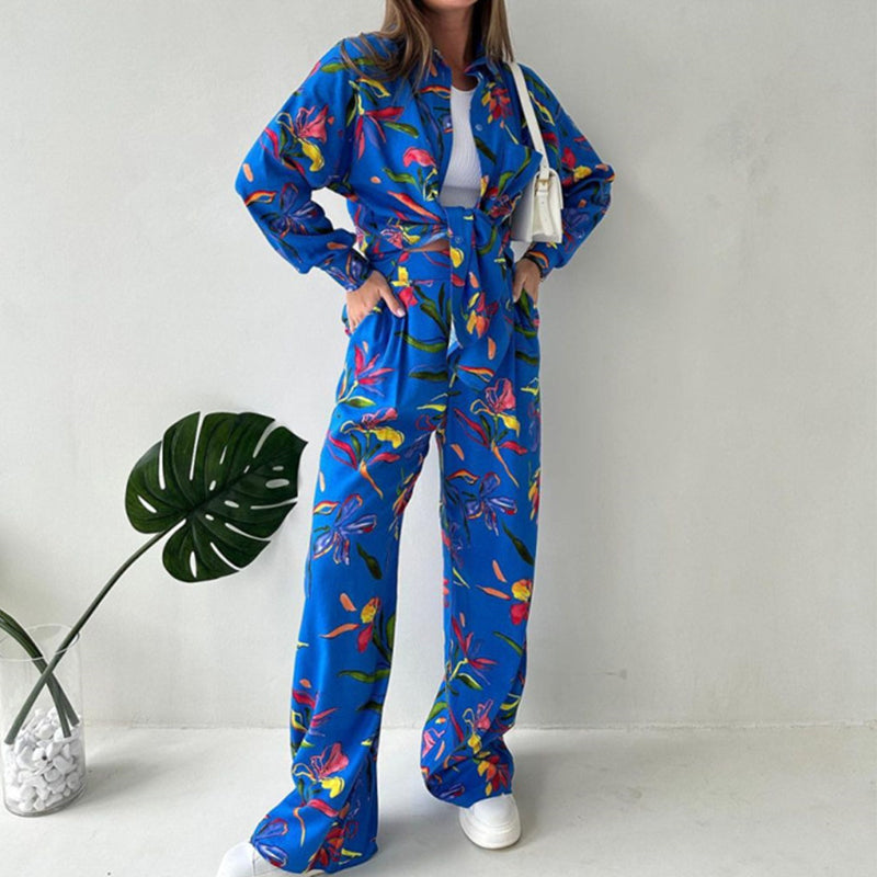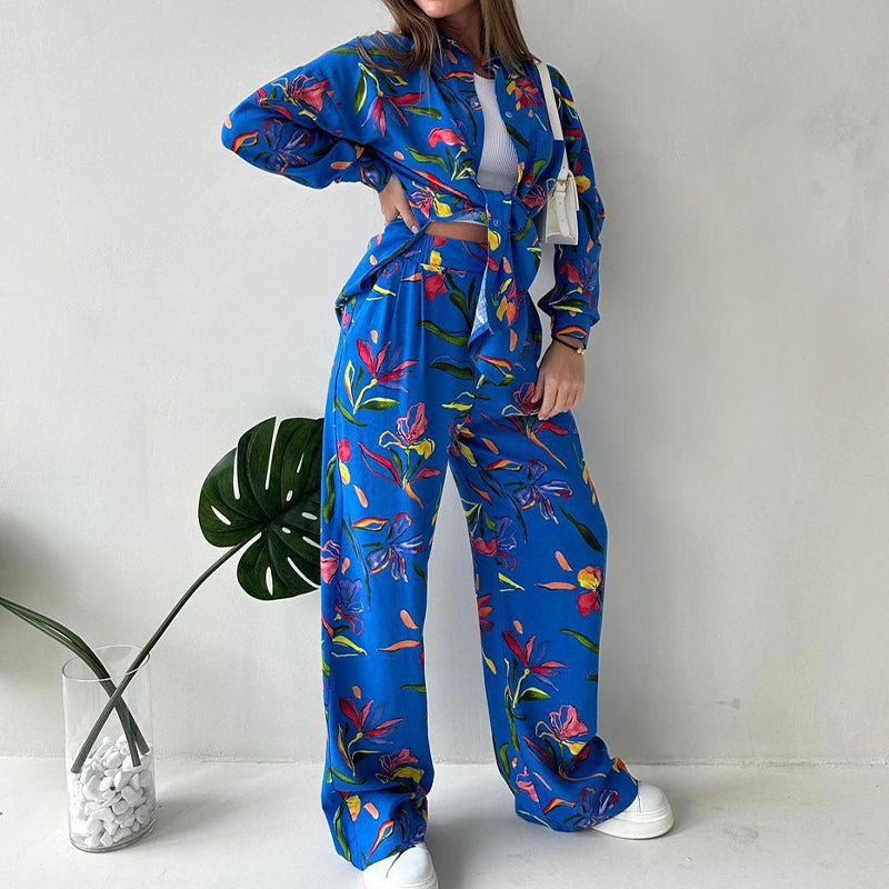 💜 LAST DAY PROMOTION - 50%OFF 💜Floral Print Shirt & Wide-Leg Pants Set
