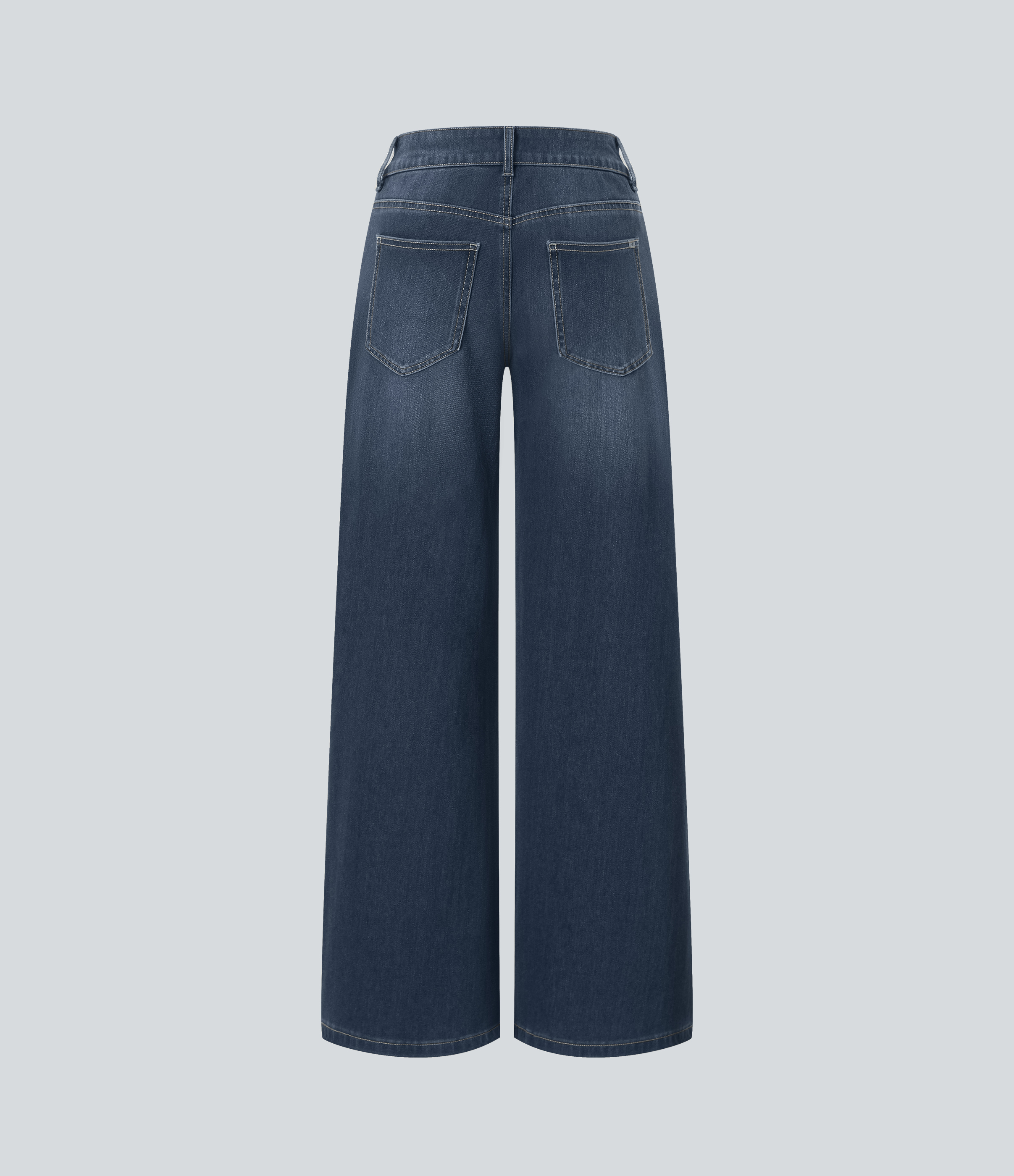 - Wide leg style gives a timeless look, while providing comfortable wear.