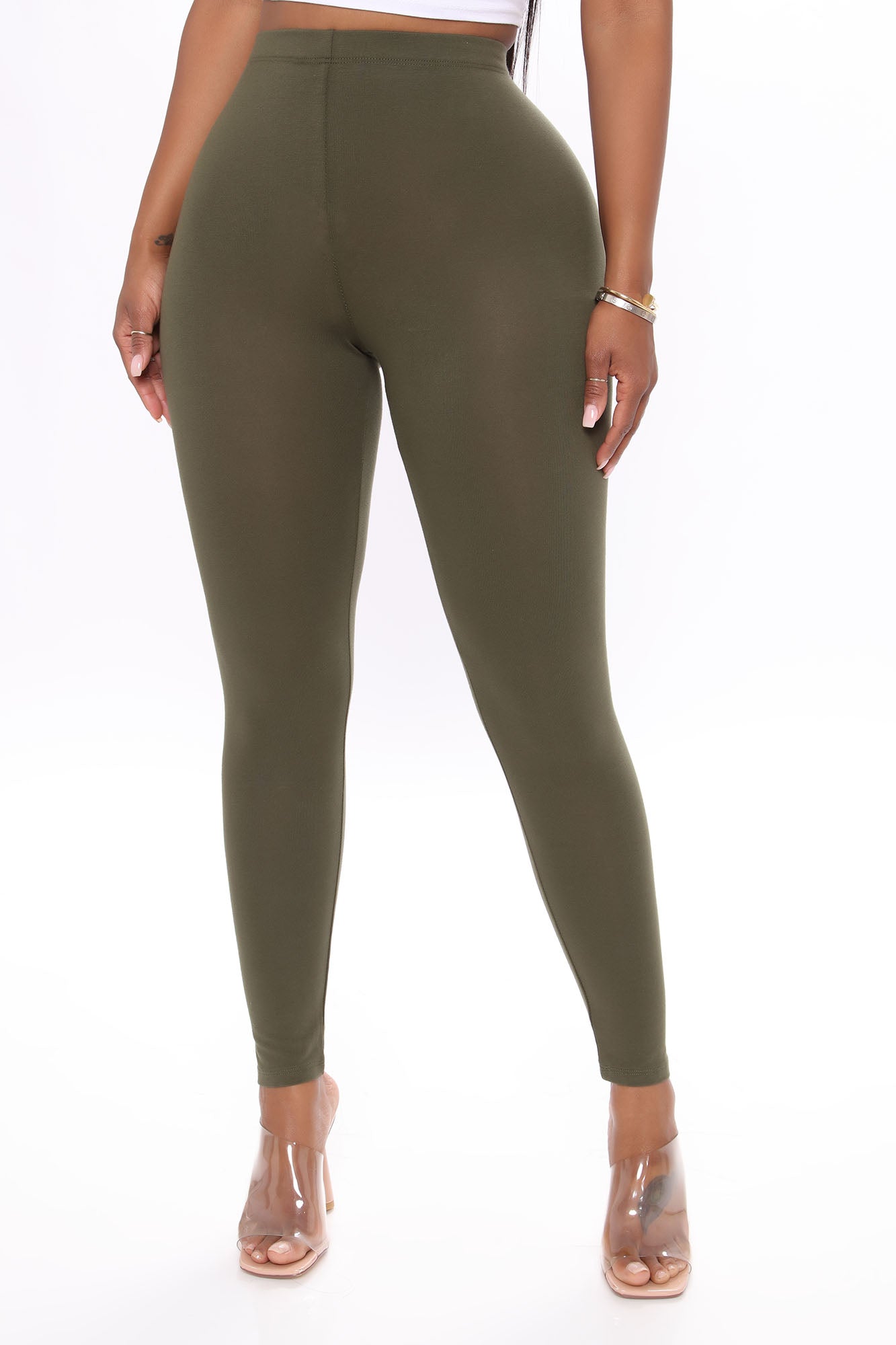 Available In Black, Heather Grey, Olive And White.LeggingsMid RiseStretch95% Cotton 5% SpandexImported