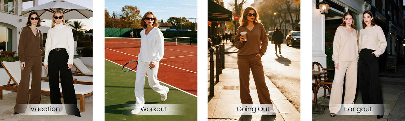 - FEATURES:The Lounge Sets for Women Feature A Trendy V Neck Pullover That Adds A Touch of Elegance to Womens Casual Look.Women's Athletic Clothing Sets Are Sweatshirt Paired with Loose Wide Leg Sweatpants Women,Offering Both Comfort and Fashion