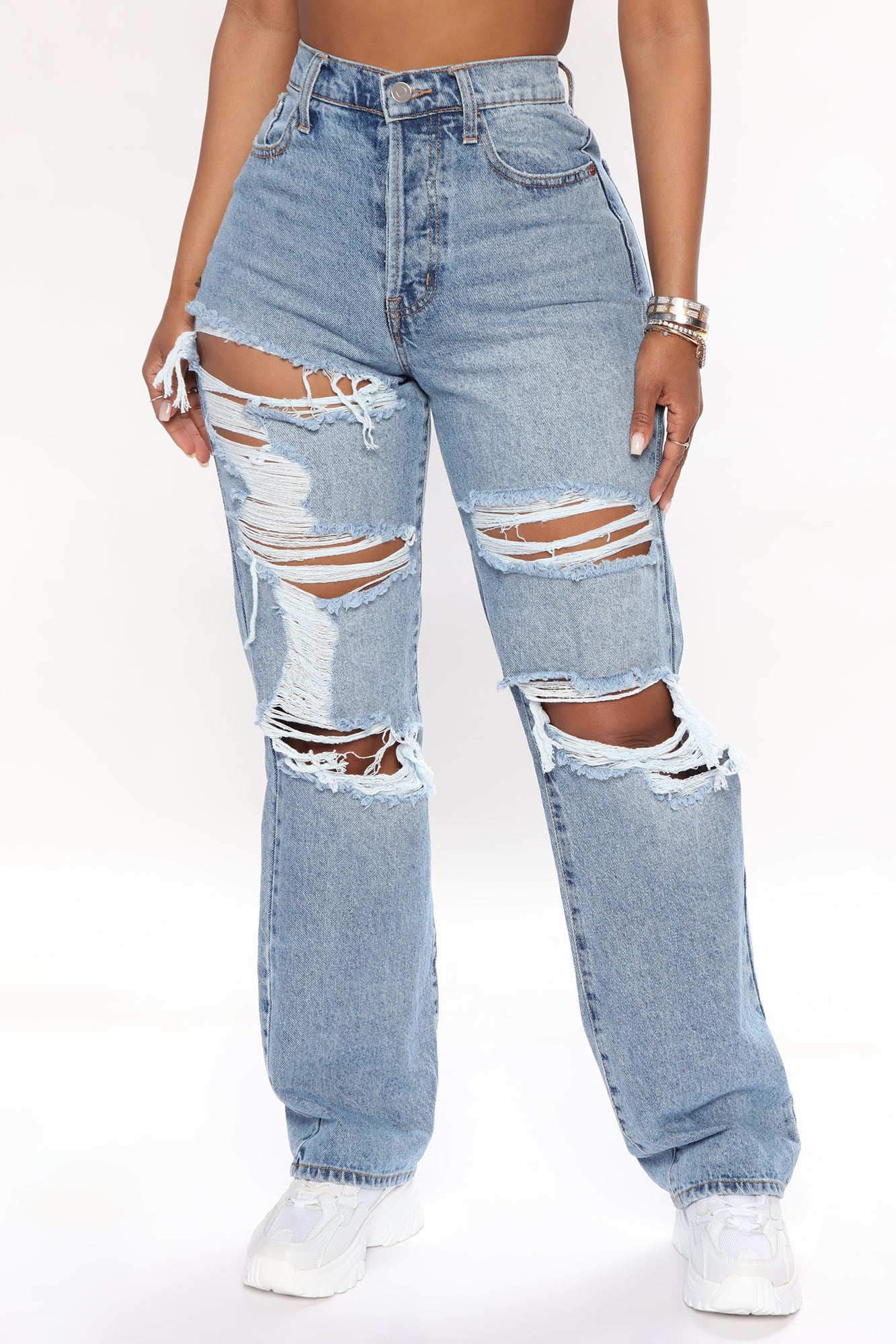Available In Light Wash And Medium Wash.Straight Leg Jean5 PocketRipped12.25" High Rise32" InseamButton-Fly ClosureNon StretchDisclaimer: Due To The Specialized Wash & Distressing Process, Each Garment Is Unique100% CottonImported