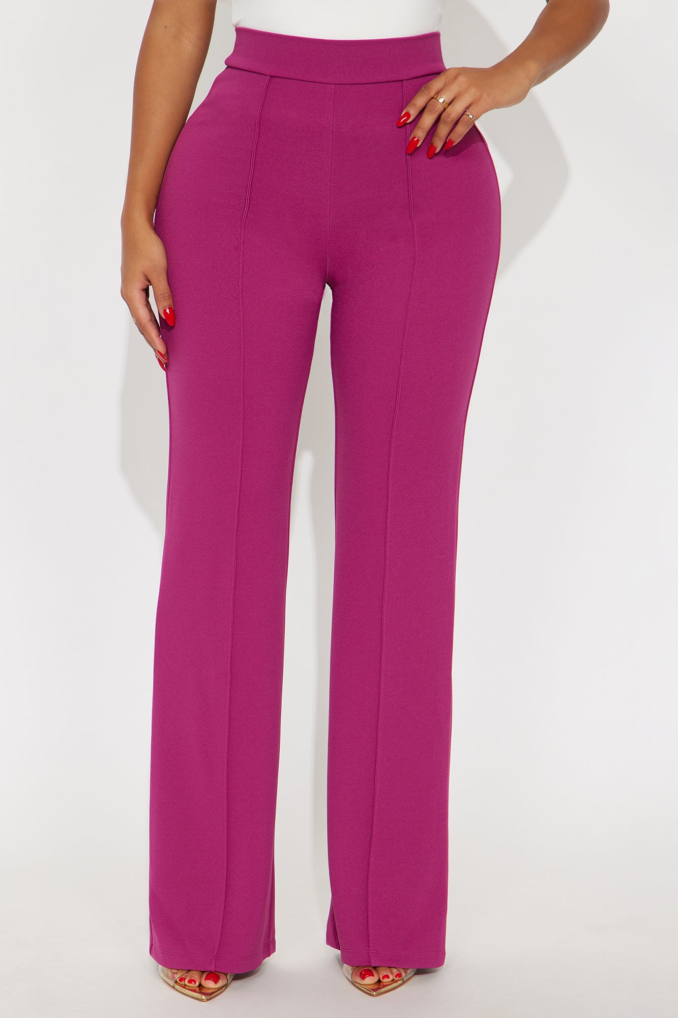 Kick butt, take names. Our Victoria High-Waisted Dress Pants in Black feature a high-rise, crepe-knit design with a pintuck detail down the front of both legs. Guaranteed to keep you looking as fancy as you are fierce.Available In Black, Burgundy, Charcoal, Chocolate, Grey, Hunter Green, Ivory, Jade, Lavender, Light Grey, Navy, Olive 1, Pink, Plum, Raspberry, Red, Rose, Royal, Rust, Sage, Taupe And White.High-RiseCrepe KnitPintuck on FrontBack Hidden Zipper35 inseam. Based On A Size Small32 Inseam. Based On A Size Small - Short95% Polyester 5% SpandexImported
