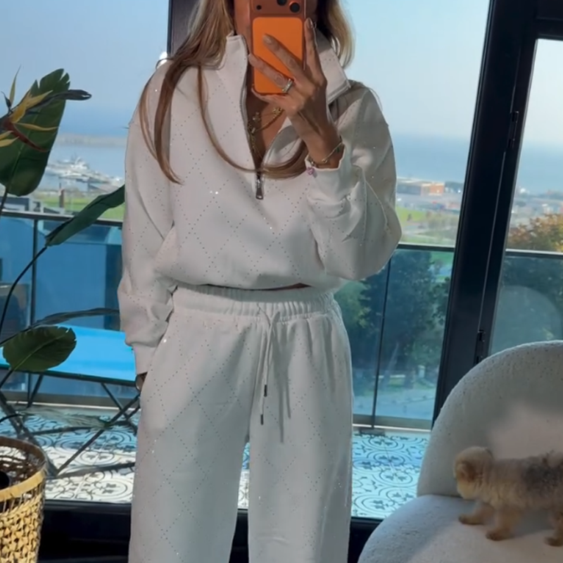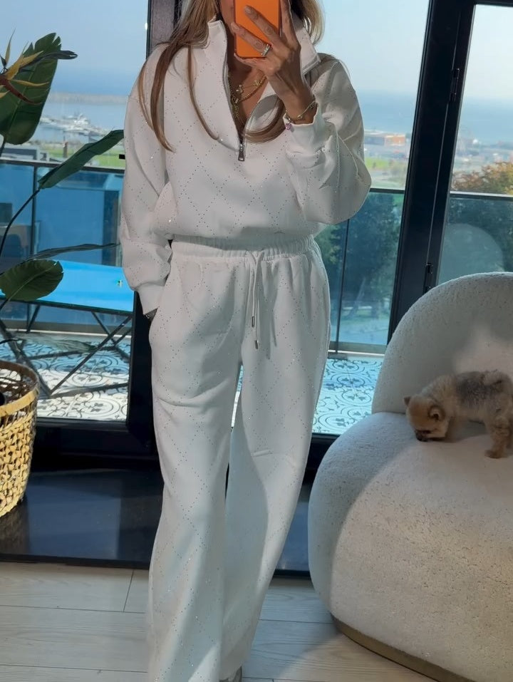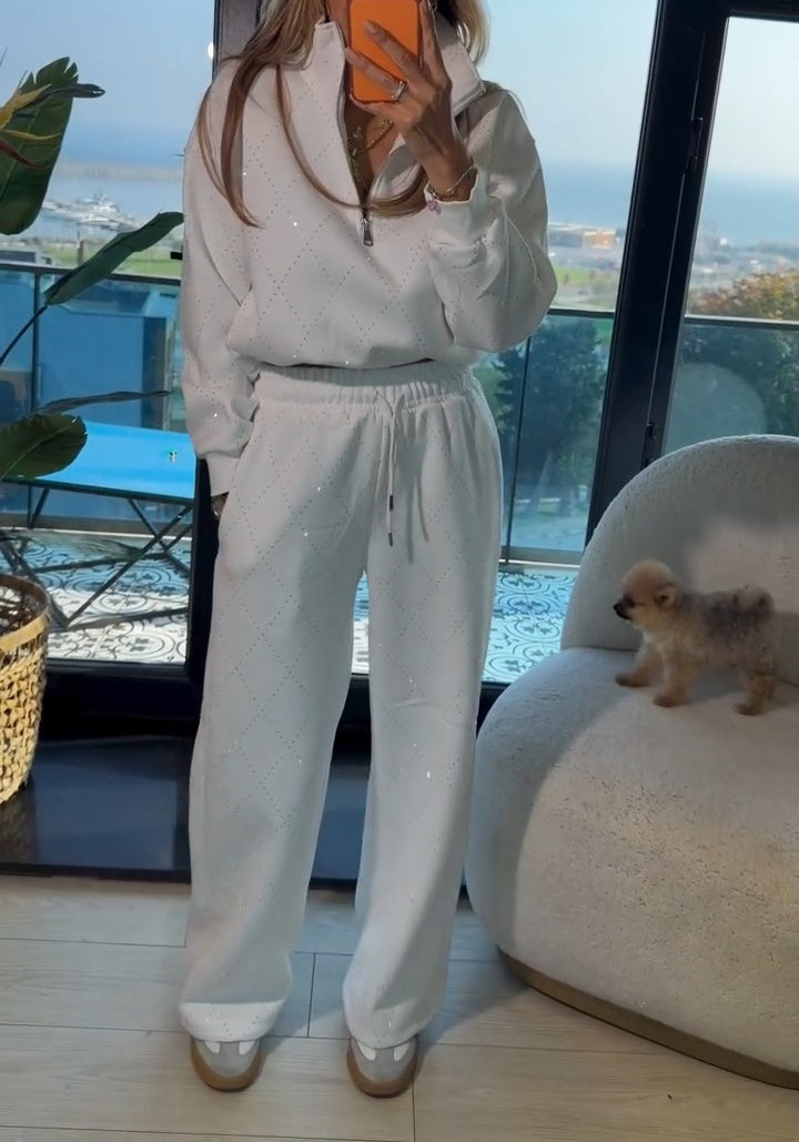 SPARKLING ACCENTS - The all-over diamond pattern adds a touch of subtle glamour to your look. This elegant detail elevates the casual set, making it perfect for both lounging at home and stylish outings.