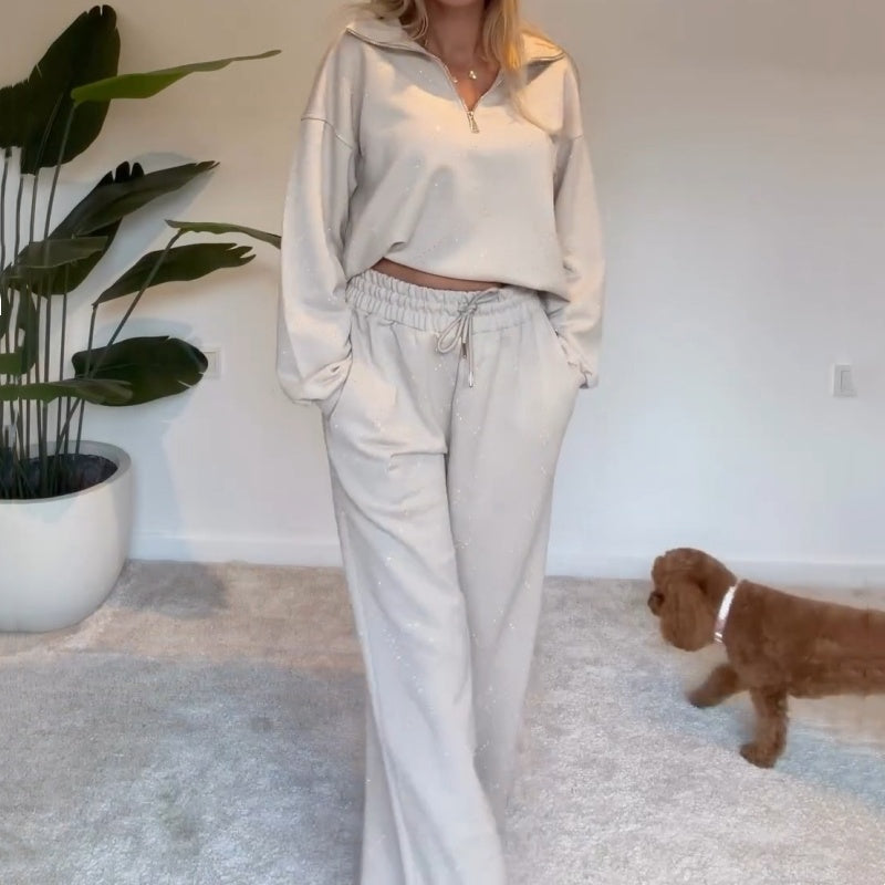 🔥Limited-time offer-Women's 2-Piece Sweatsuits Half Zip Pullover & Wide Leg Pants