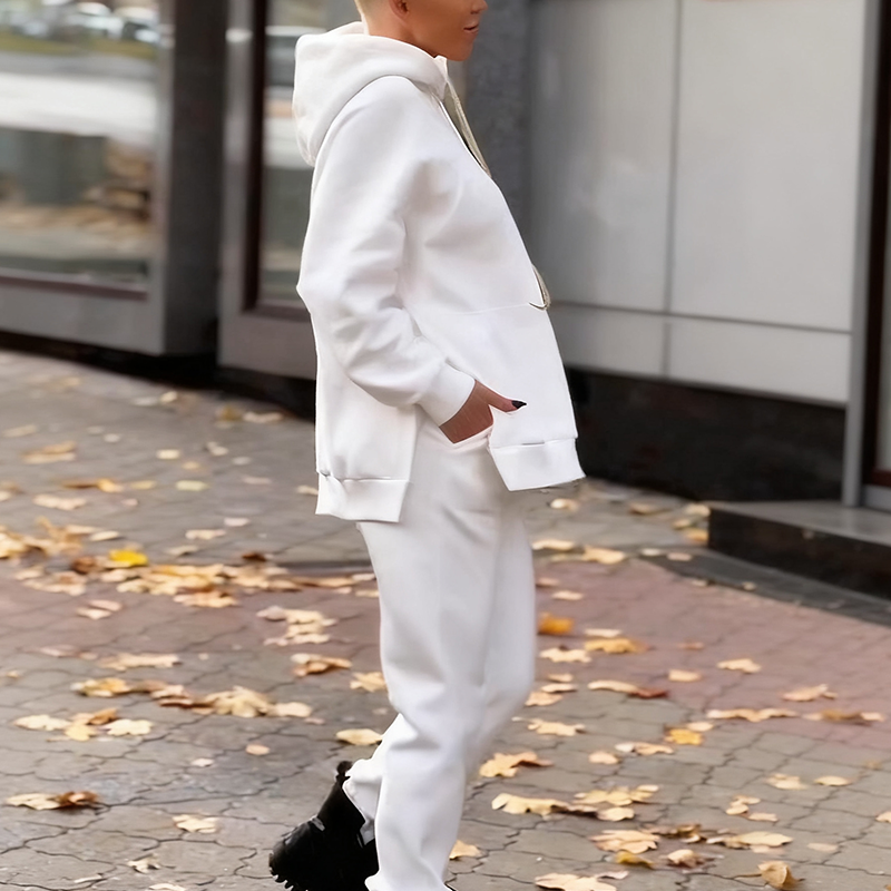 HOODED DESIGN - The attached hood provides functional warmth and protection against light wind and chill. It also adds a classic streetwear element to the design, enhancing the overall relaxed and sporty vibe.