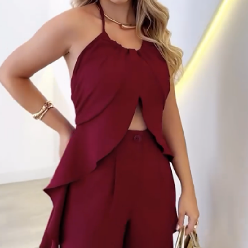 Package Includes: 1* Women's Backless Top & Loose Wide Leg Pants Set