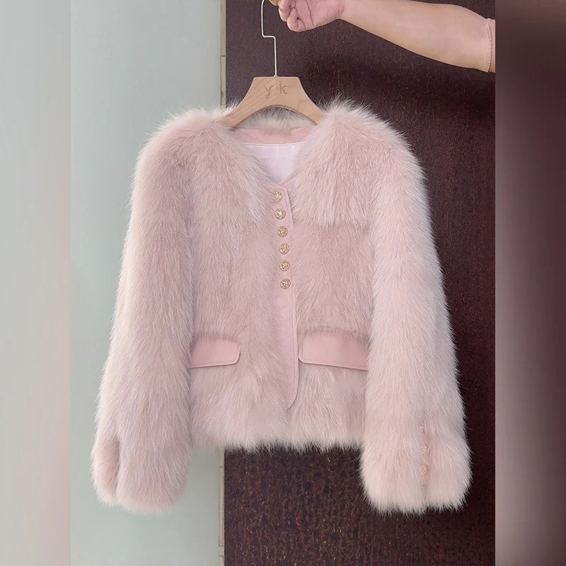• Women's Faux Fox Fur Coat Short Section Autumn Winter New Style Korean Version Commuting Real Fur Patchwork Outerwear