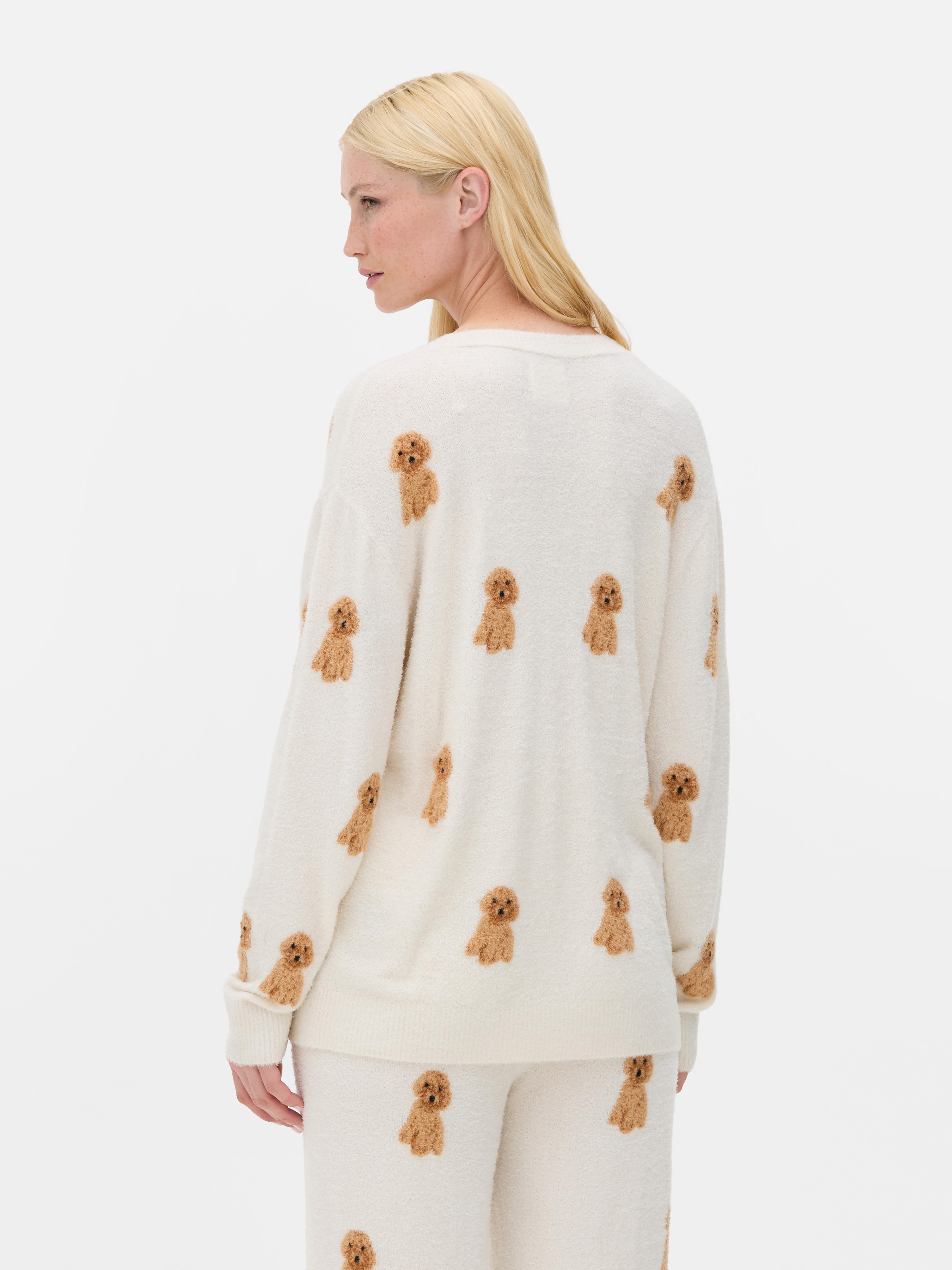 This cardigan comes in a warm, fluffy fabric with a V neckline, button front and the cutest allover print