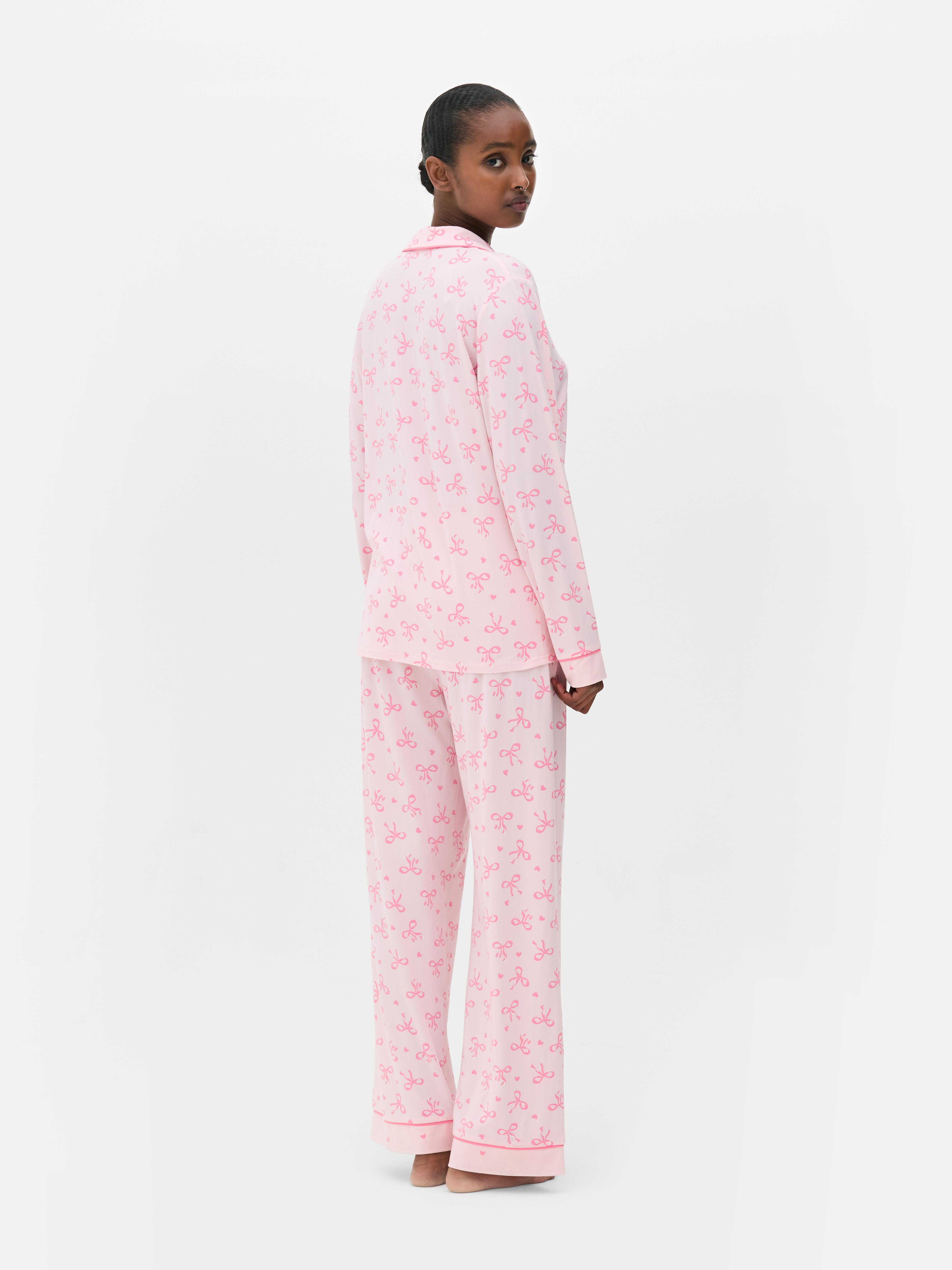 Add a little print to your pajama drawer with this set - featuring a boyfriend shirt and full length bottoms