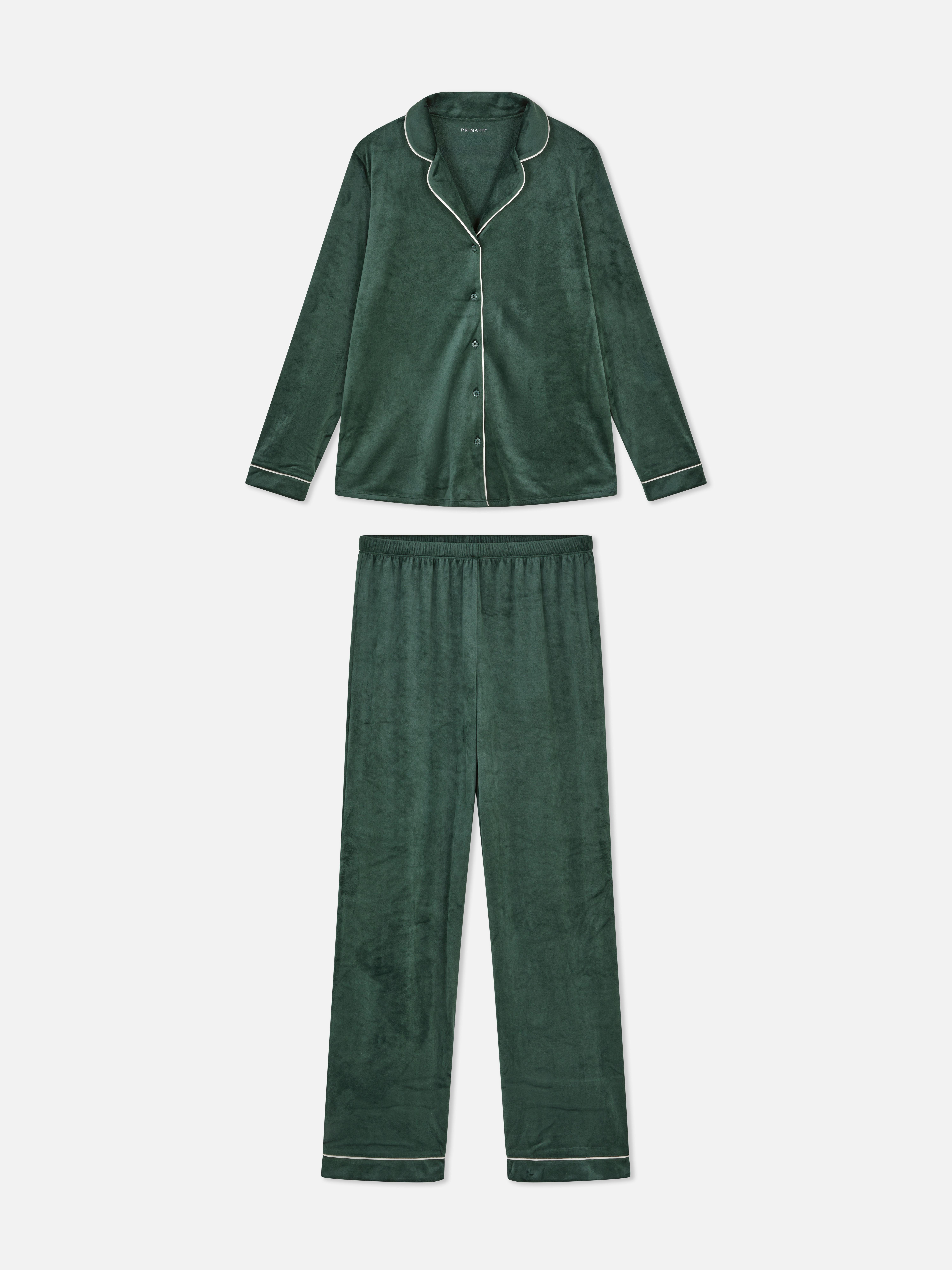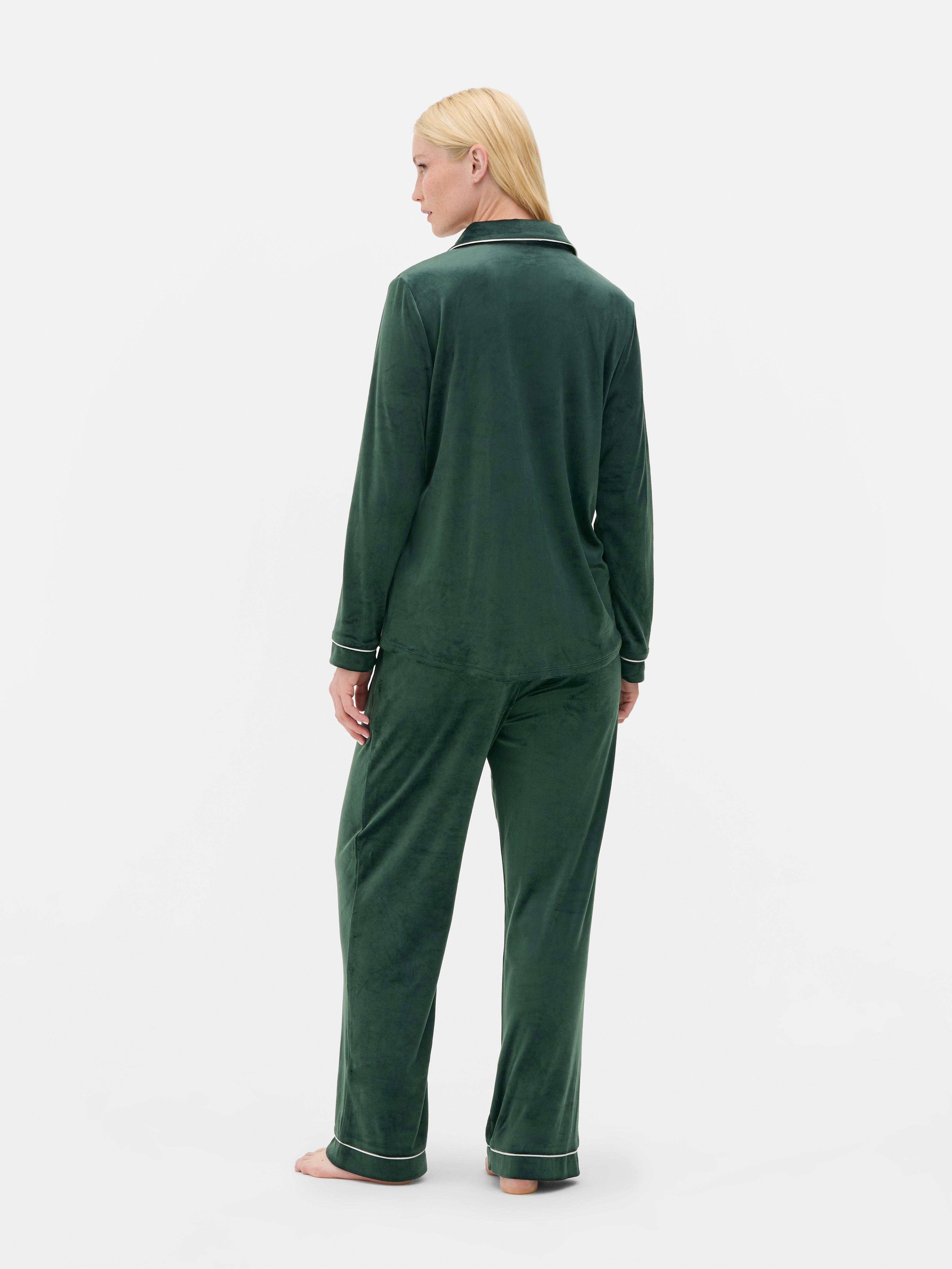 A boyfriend pajama set featuring a button-up, collared shirt and straight leg pants - finished in a soft touch, minky fabric
