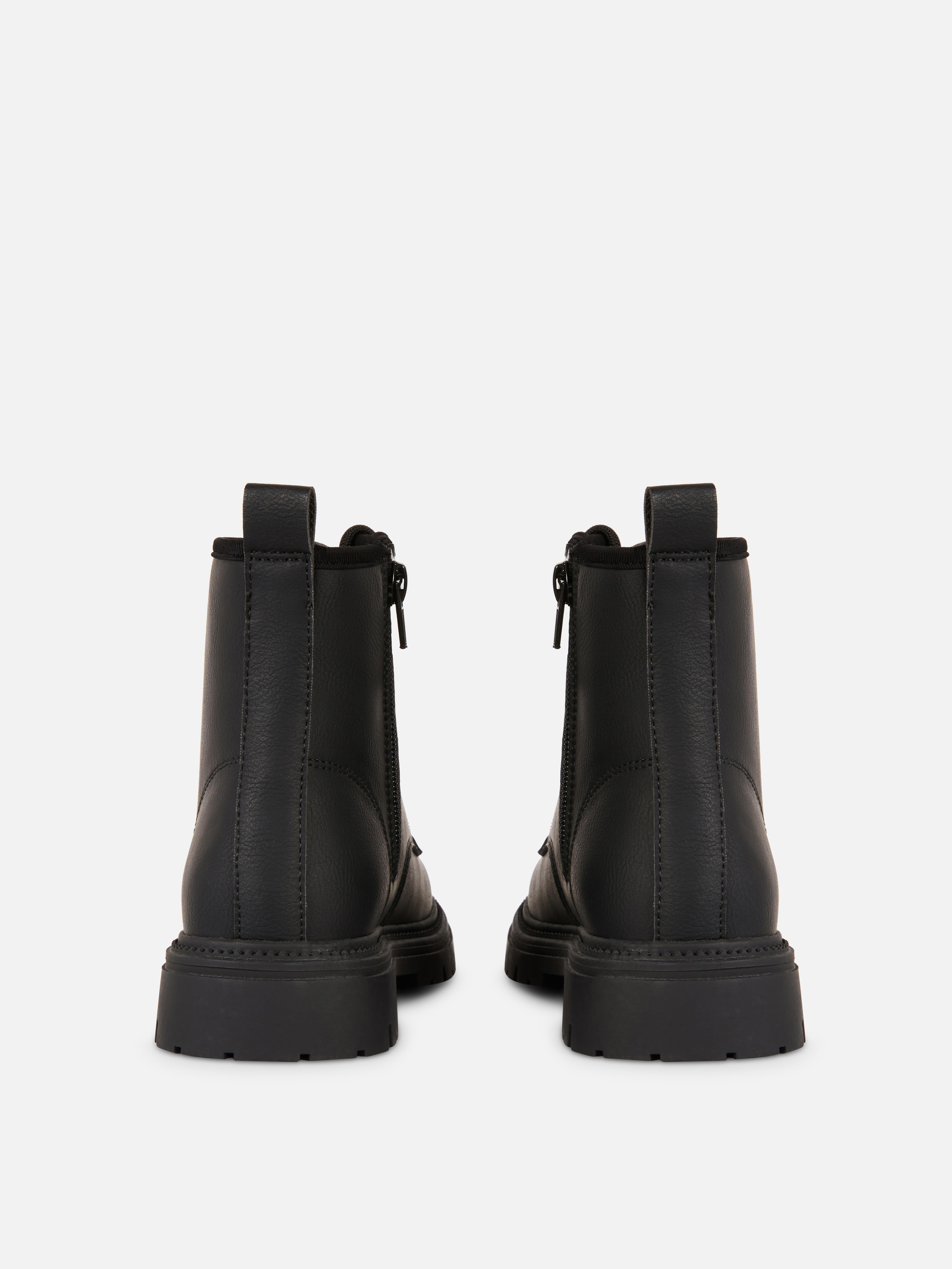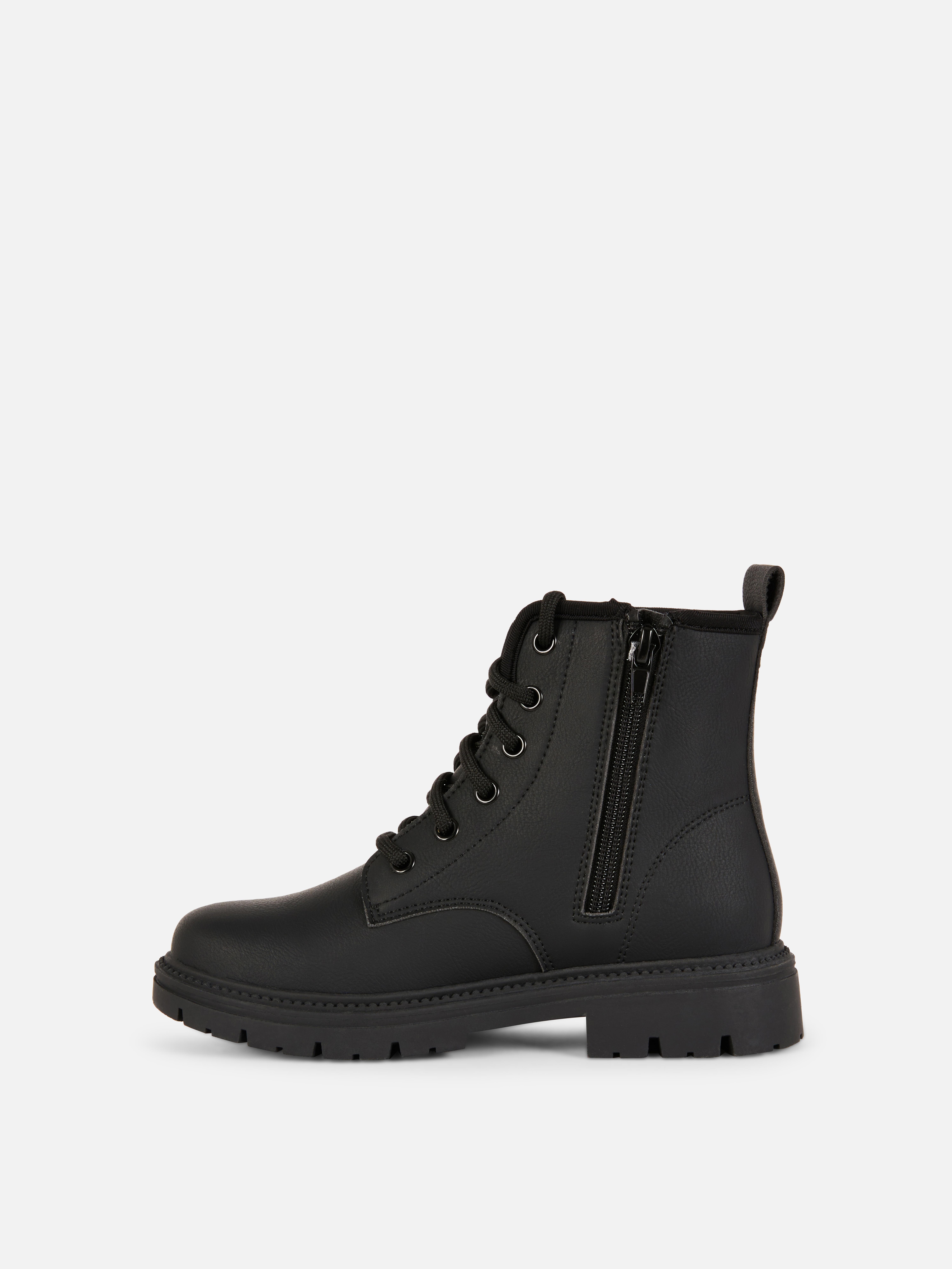 These black zip up tracker boots are built for mini adventures and big puddle stomps. With classic lace-up details and an easy side zip, they’re perfect for kids who want the cool look without the faff. The chunky sole has plenty of grip for running, jumping, and all kinds of outdoor exploring, while the matte-finish upper gives off grown-up vibes (without growing up too fast). A handy pull tab at the heel helps with quick changes, so they're out the door in seconds. Team with jeans, joggers, or their favourite cargo trousers for instant explorer energy.