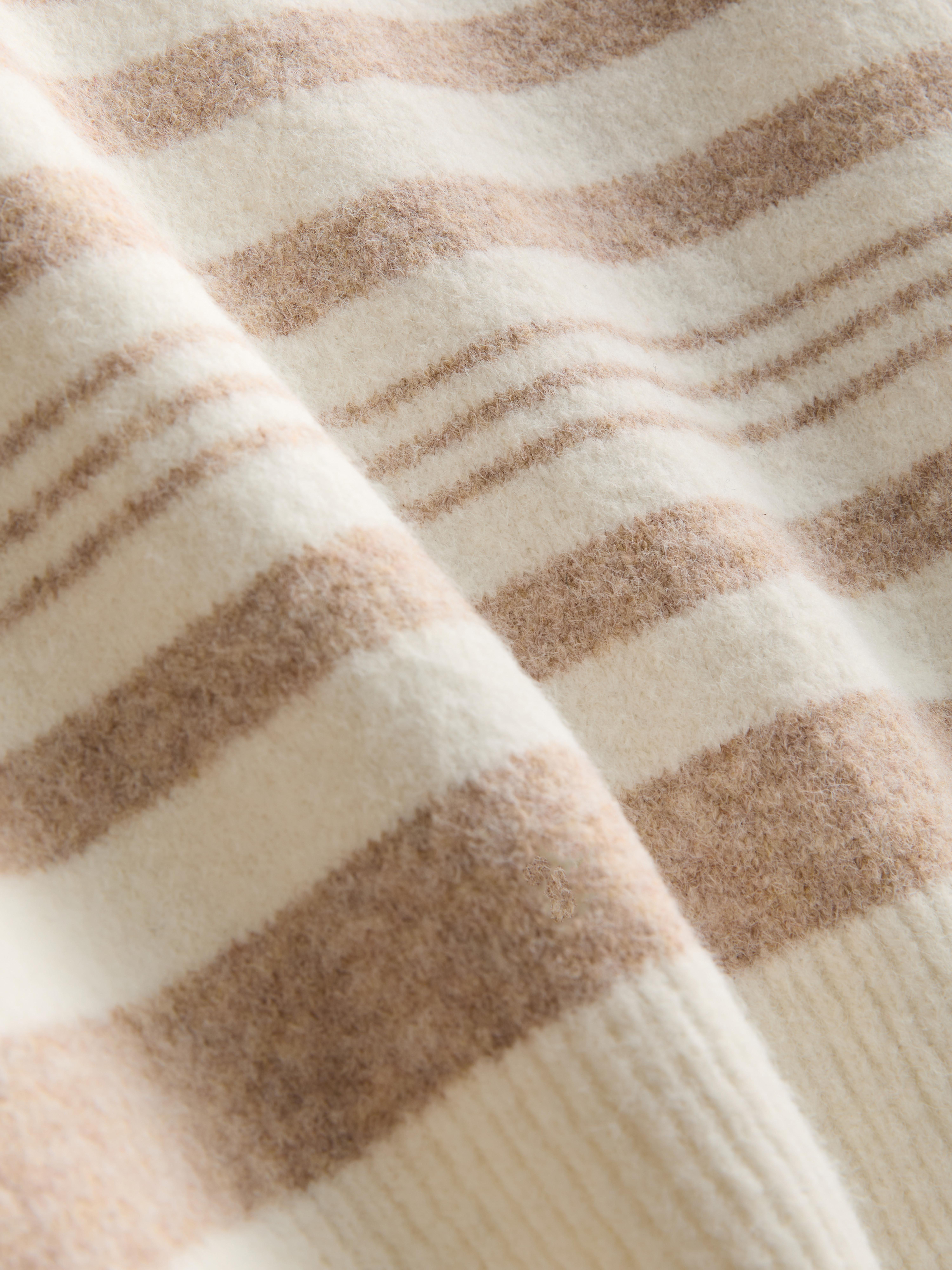This 2-in-1 top gives you an easy layered look with a striped knit vest over a crisp woven shirt. The soft knit sits in oatmeal tones, while the shirt brings structure with its collar and voluminous balloon sleeves gathered at the cuff. Both layers are cut with a relaxed fit, creating a modern silhouette that works well for workdays or smarter plans. A simple way to add texture and interest to your outfit.