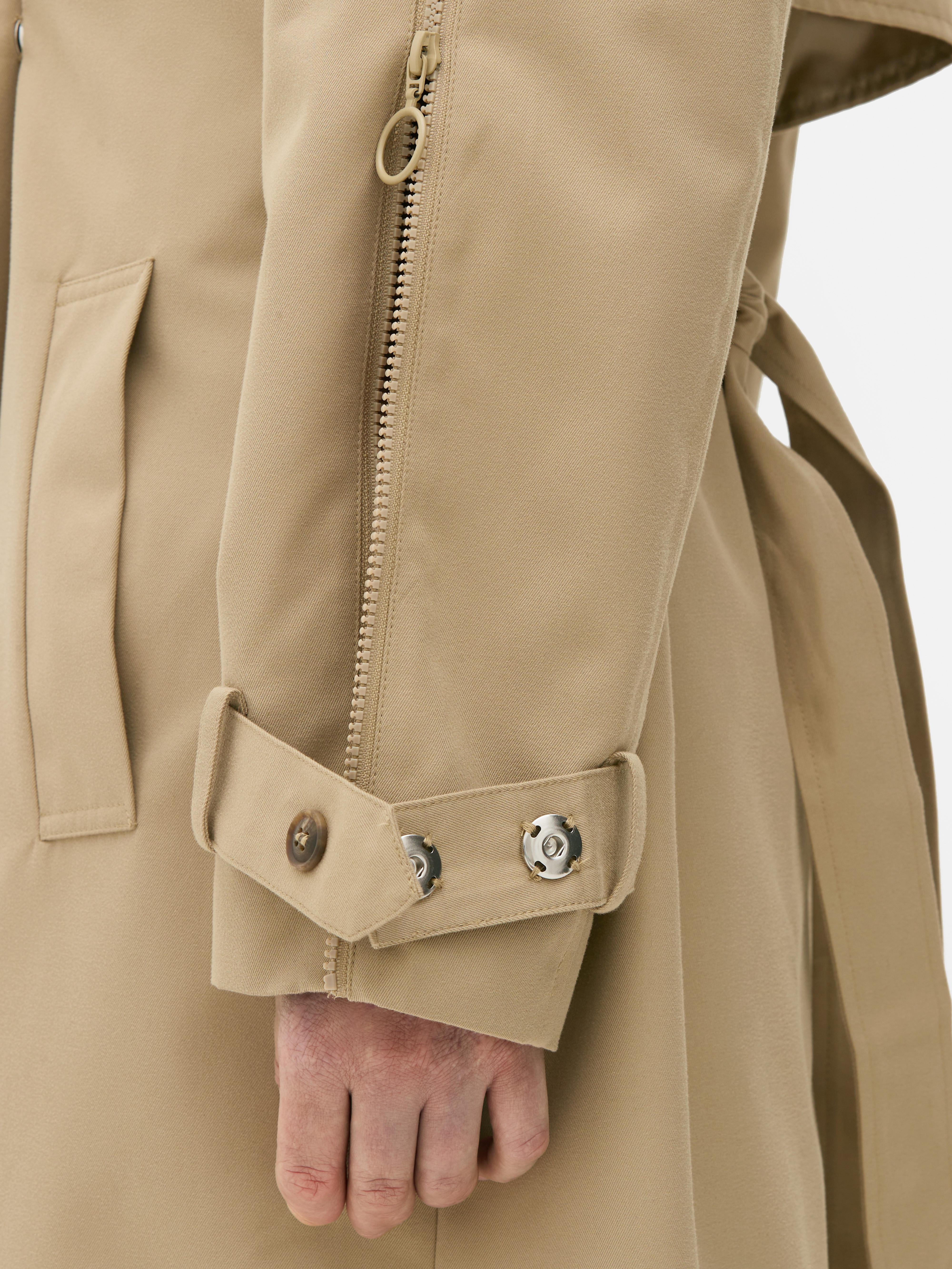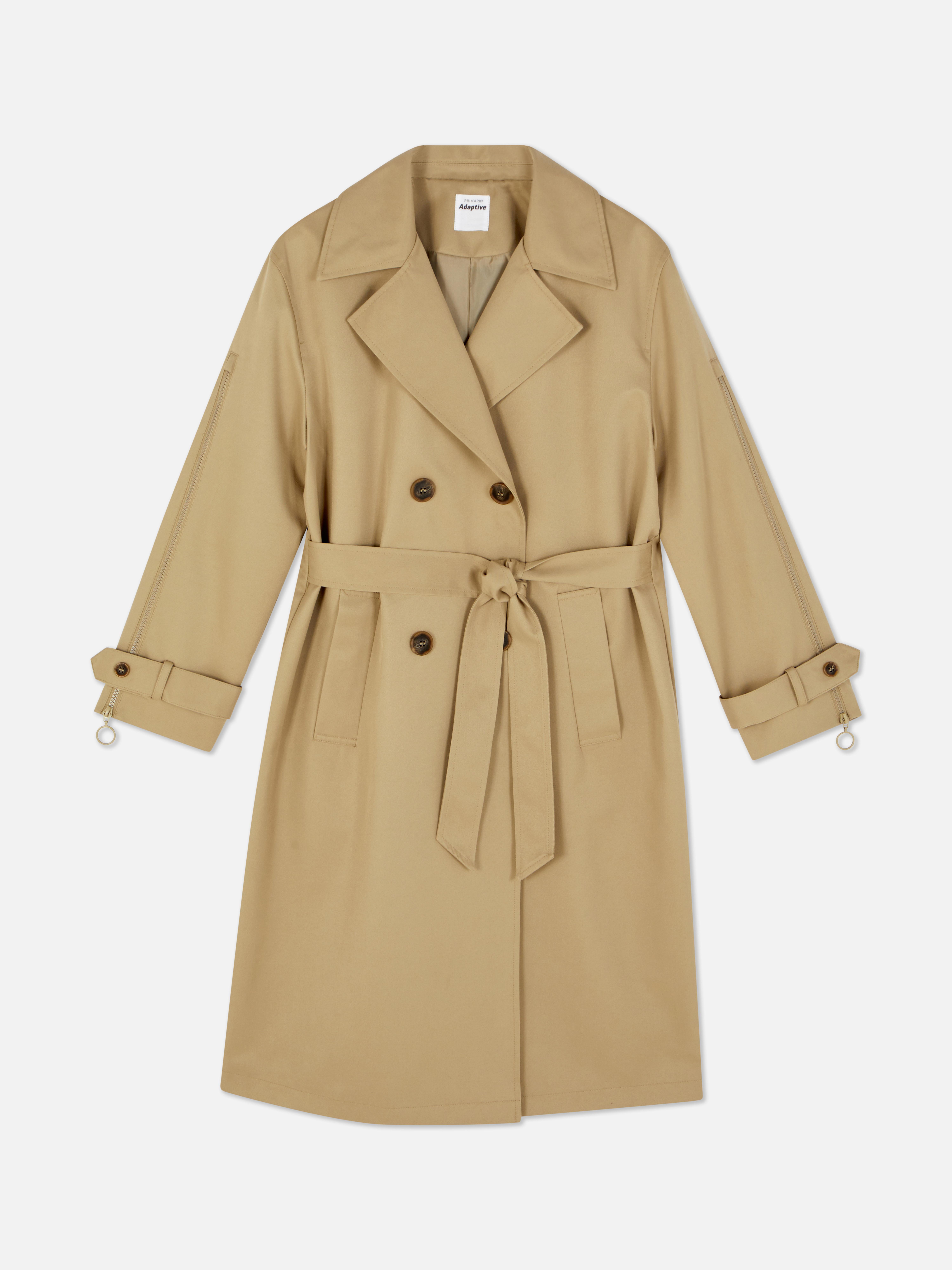 This classic trench coat reimagines timeless style with smart adaptive features. Magnetic fastenings are fronted with traditional buttons for easier dressing, while innovative zip details along the sleeves allow for quick adjustments. The double-breasted design maintains its iconic look, complete with a tie belt and practical pockets with magnetic closures. Style with straight leg trousers and an Oxford shirt for a polished weekday look, or pair with leggings and a T-shirt for casual weekend outings. WARNING: This product contains a magnetic element. If you have a pacemaker or implantable defibrillator consult your doctor before using the product