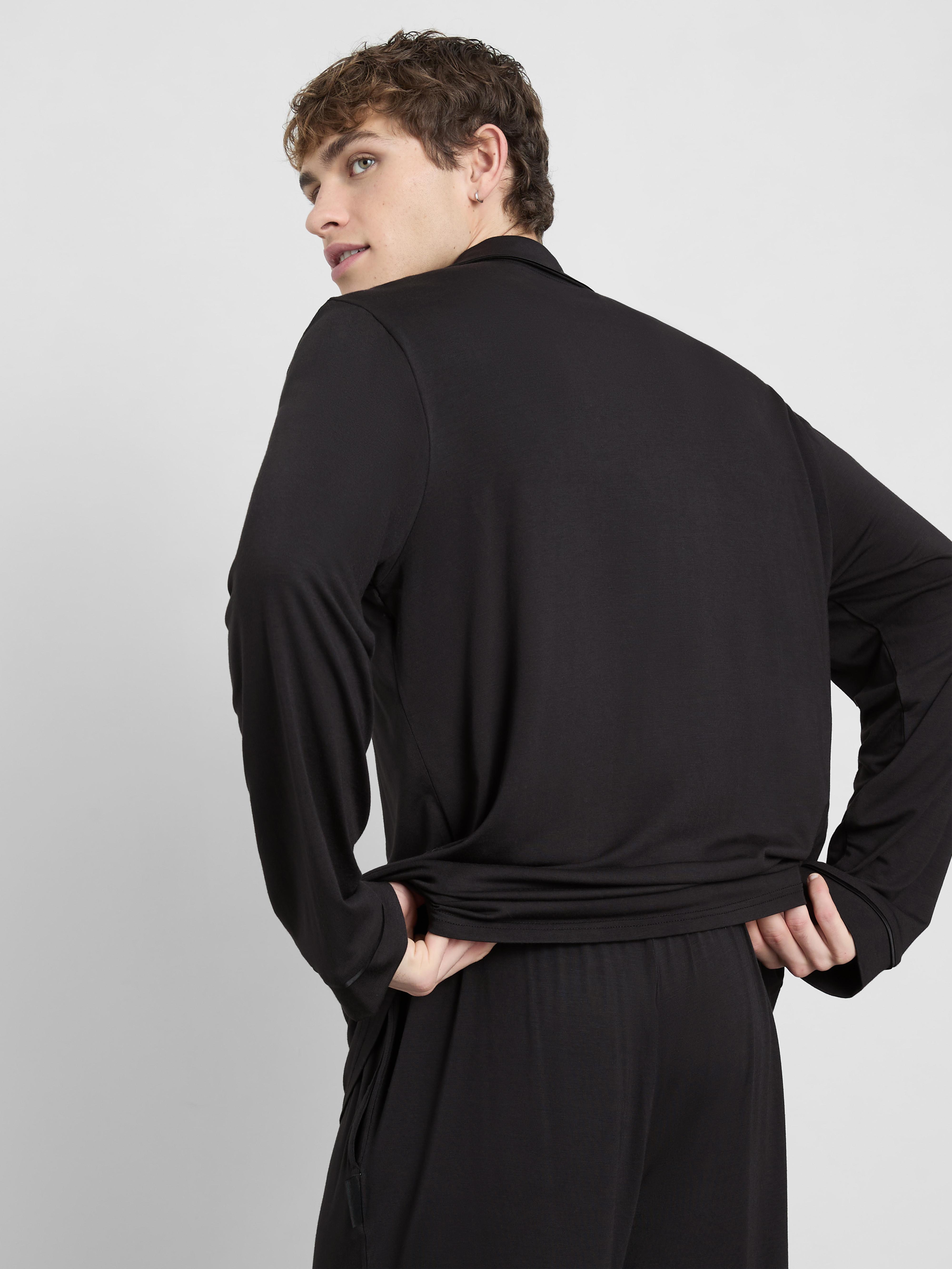A comfy loose-fit pajama top with button-up front, long sleeves, and notched collar