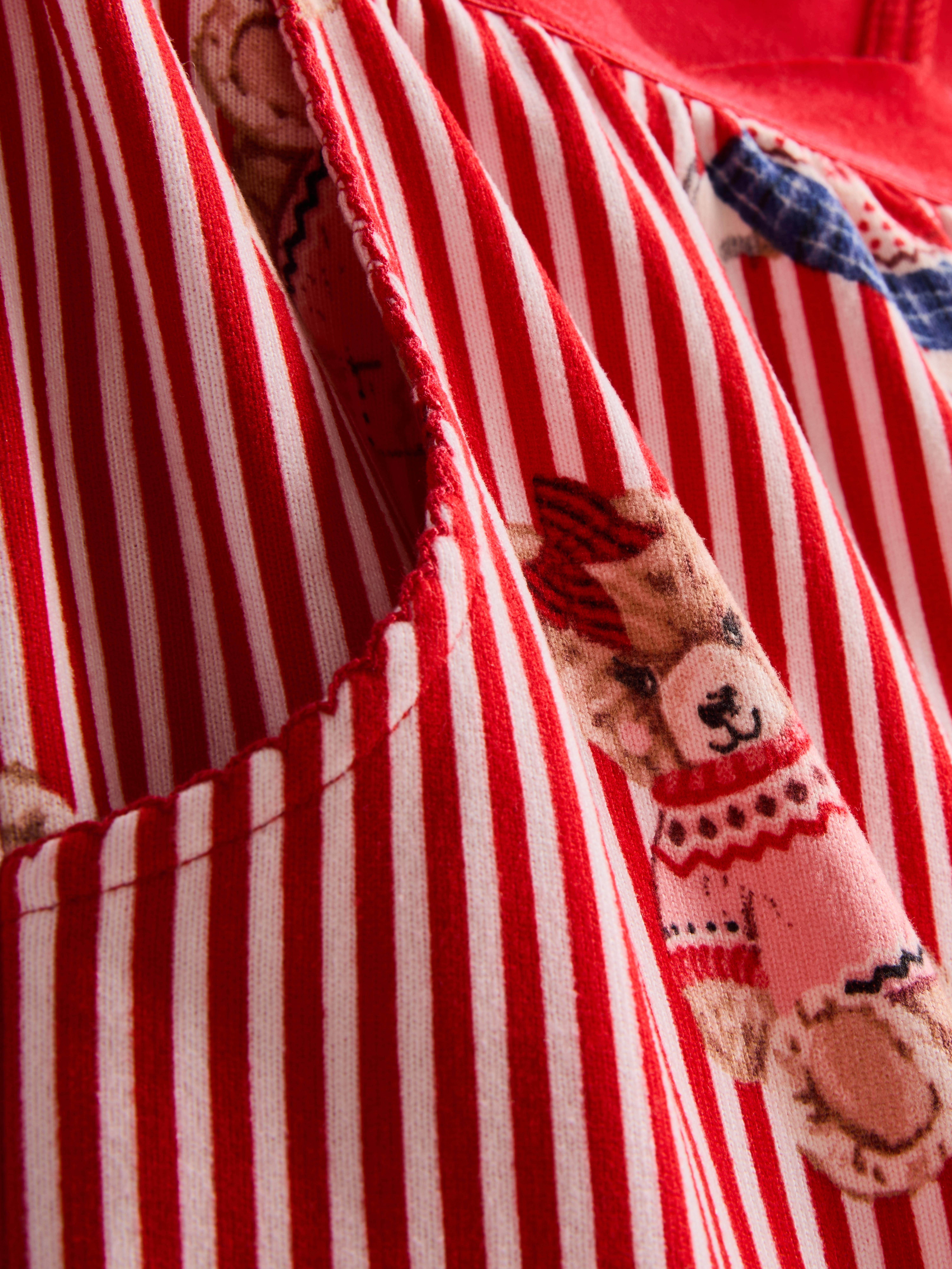 Covered in a festive teddy bear print, these striped shorts have side pockets and an elasticated waistband