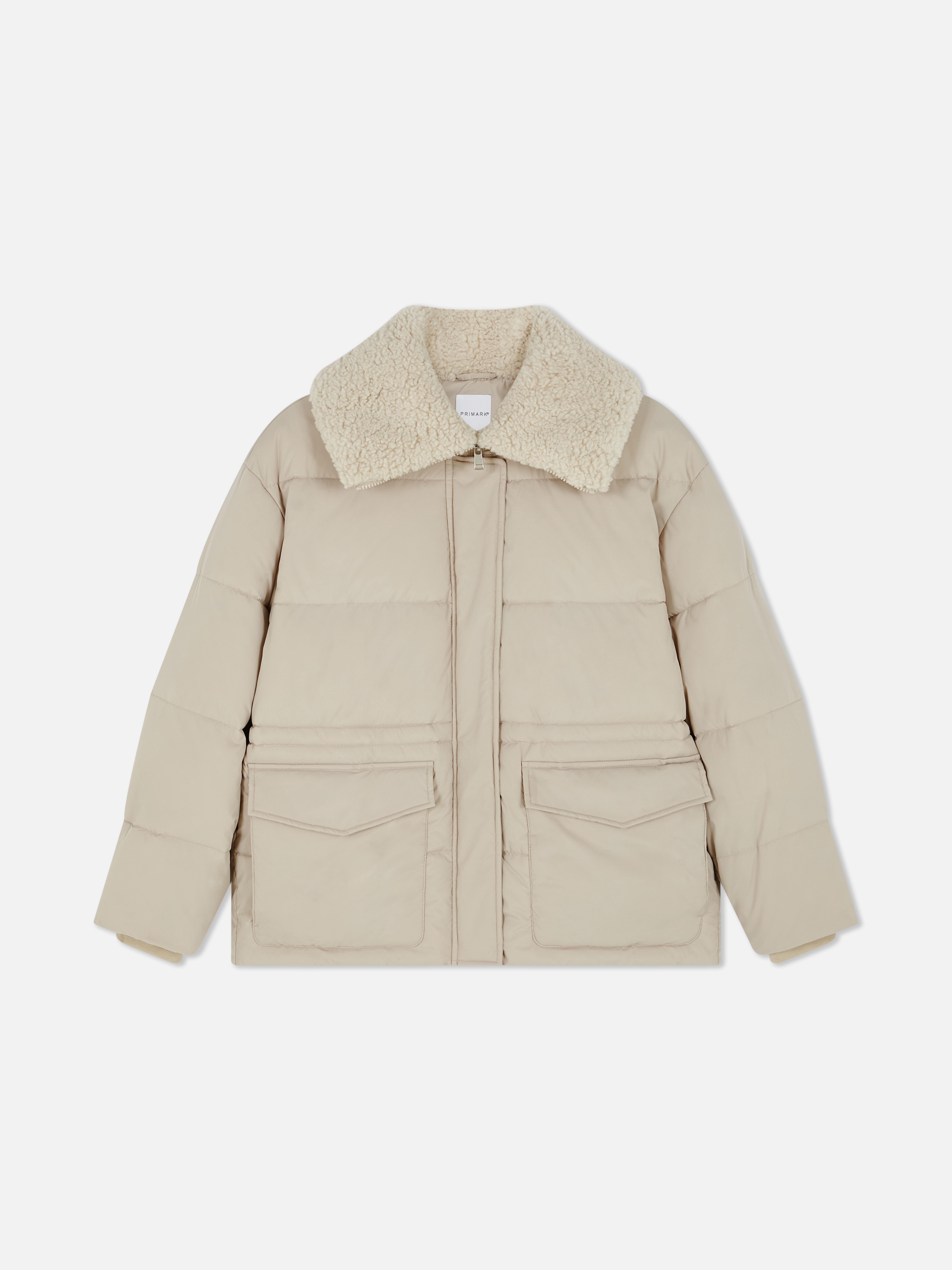 With a cinched waist for extra shape, this coat comes with a Borg collar and two front pockets