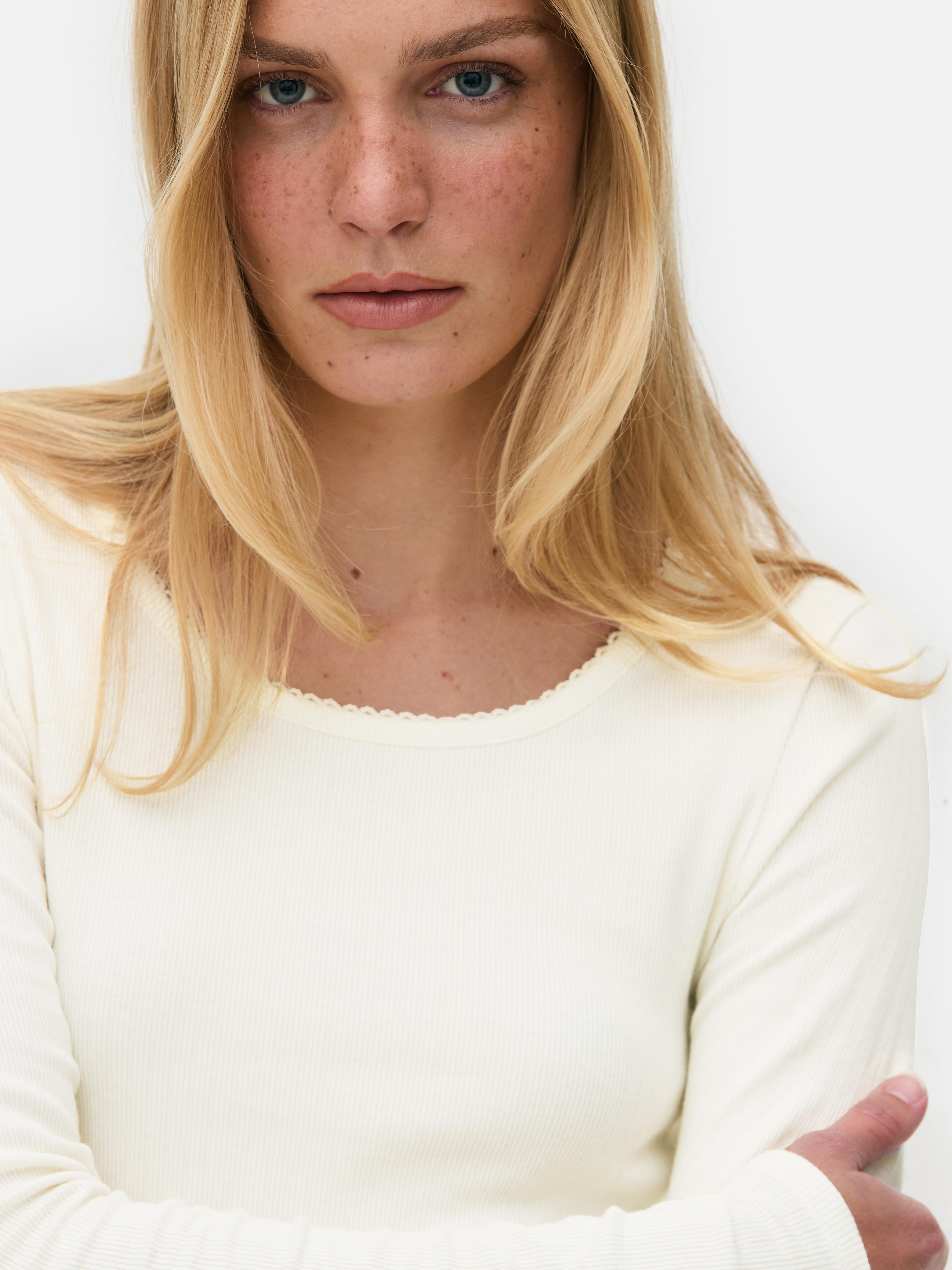 Soft, simple and perfect for layering, this scoop neck top is an everyday go to. Designed in a ivory shade, it’s made from a cotton blend with a delicate pointelle knit for subtle texture. The body-hugging fit and long sleeves keep things snug, while the scoop neckline adds a gentle touch of shape. Whether worn solo or under your favourite jacket, it’s a comfy pick that goes with just about everything.
