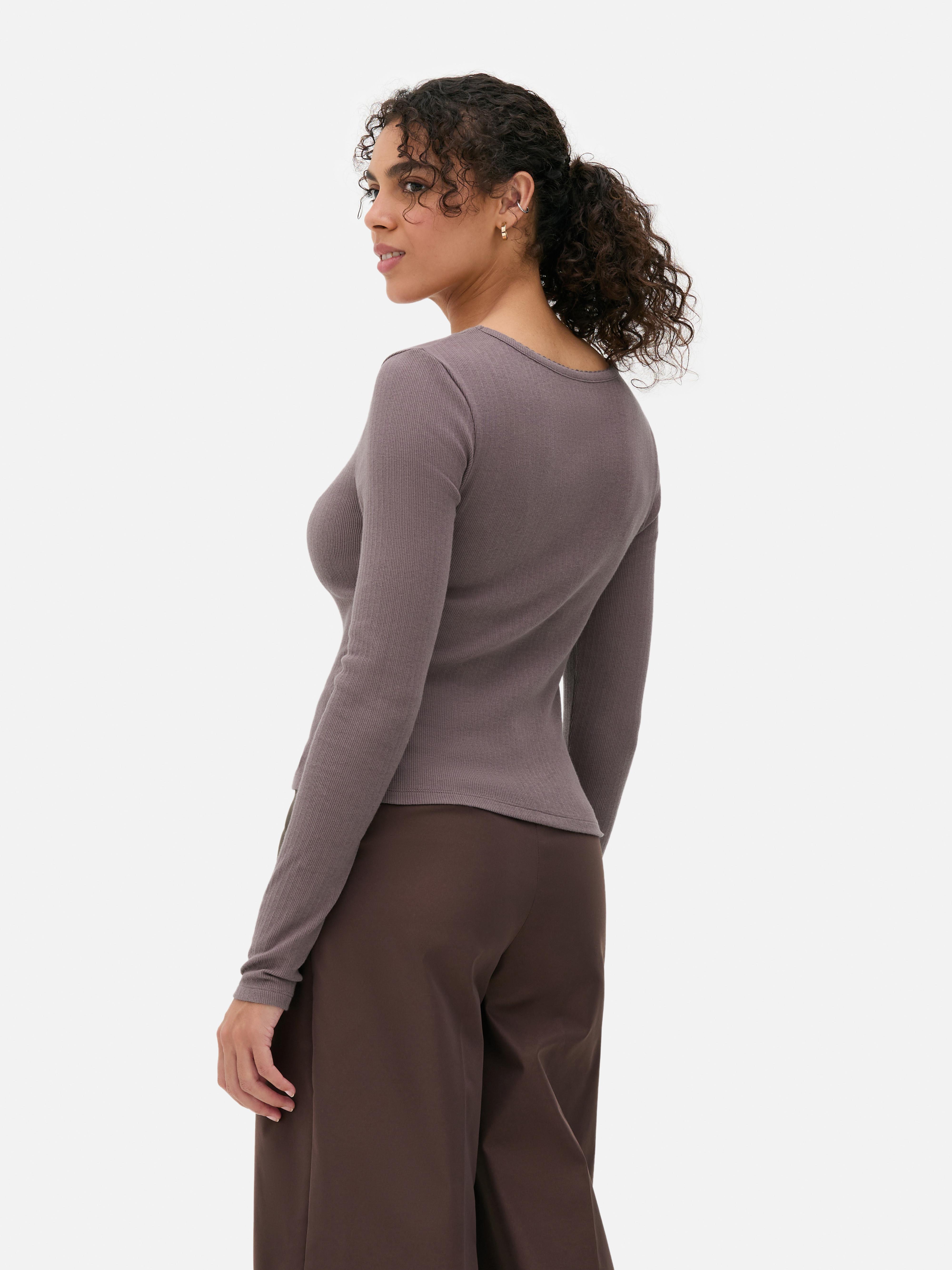 Soft, simple and perfect for layering, this scoop neck top is an everyday go to. Designed in a dark pink shade, it’s made from a cotton rich fabric. The body-hugging fit and long sleeves keep things snug, while the scoop neckline adds a gentle touch of shape. Whether worn solo or under your favourite jacket, it’s a comfy pick that goes with just about everything.